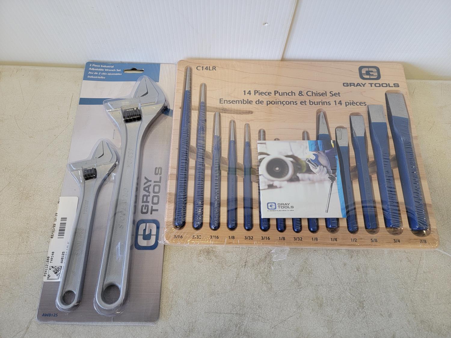 5203 Gray Tools 14 Piece Punch and Chisel Set & 2 Piece Adjustable Wrench Set (Unused)