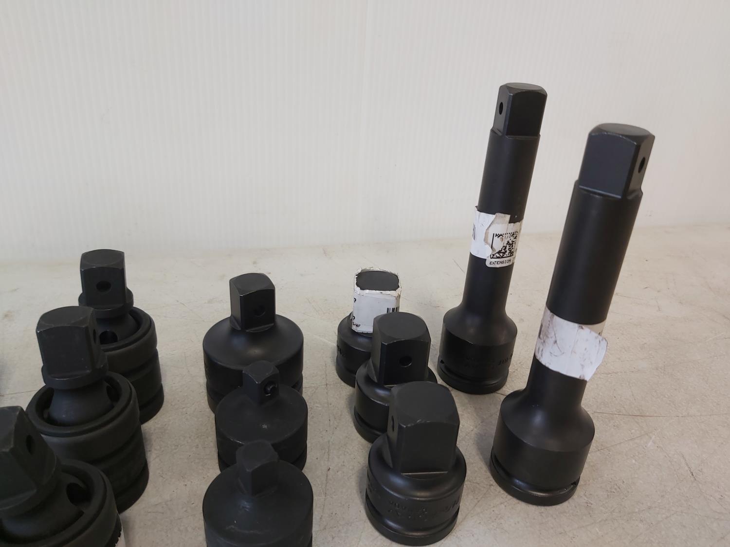 Adapters: 1 inch to 3/4 inch drive, (3) 3/4 inch to 1 inch drive, (2) 3/4 inch to 1/2 inch drive