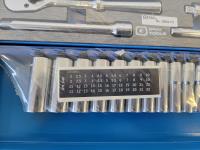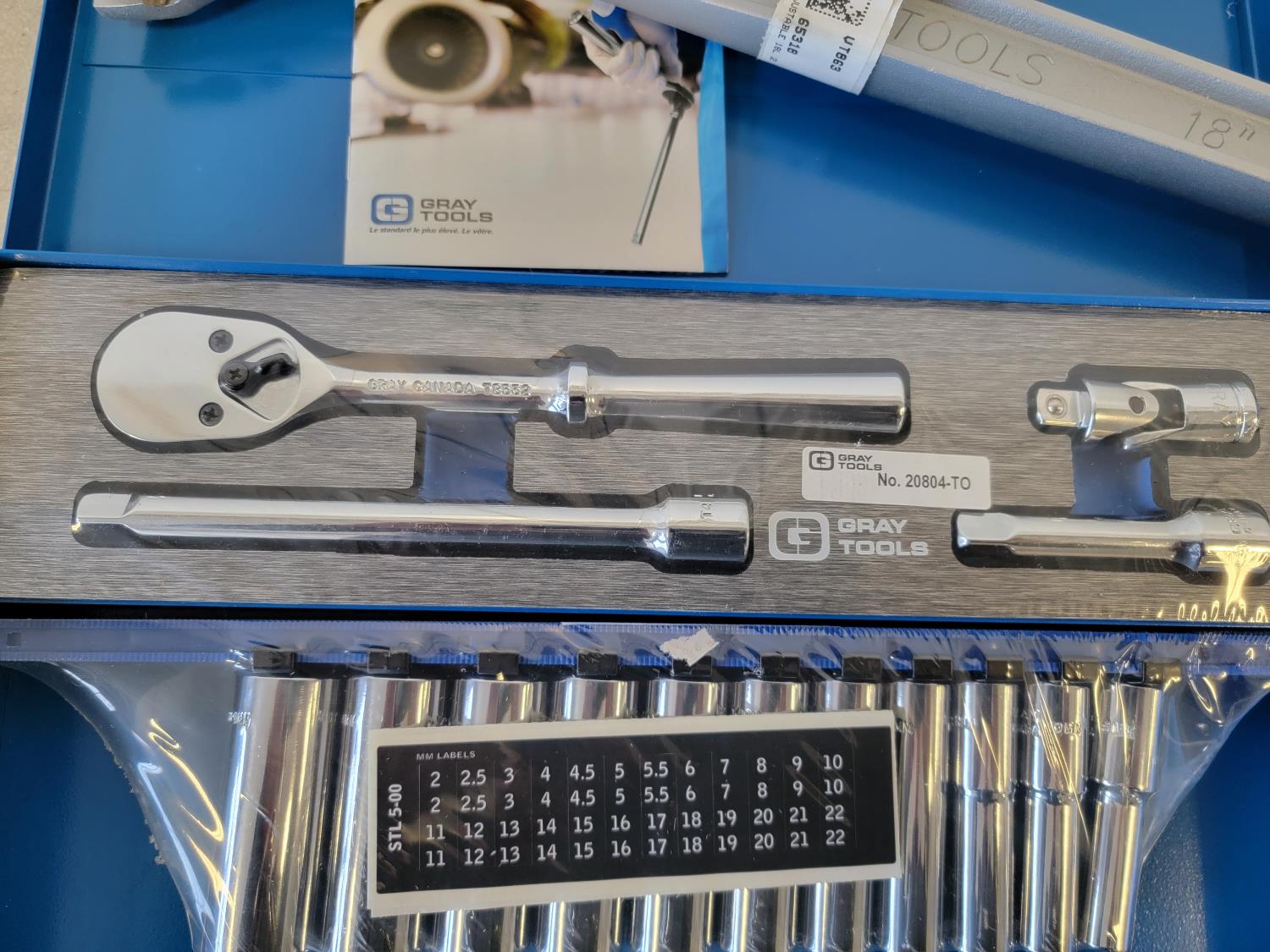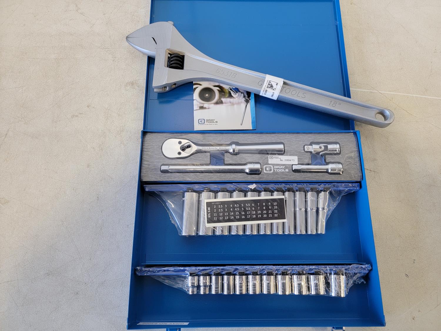 5130 Gray Tools 3/8 Inch Drive Metric Socket Set and 18 Inch Adjustable Wrench (Unused)
