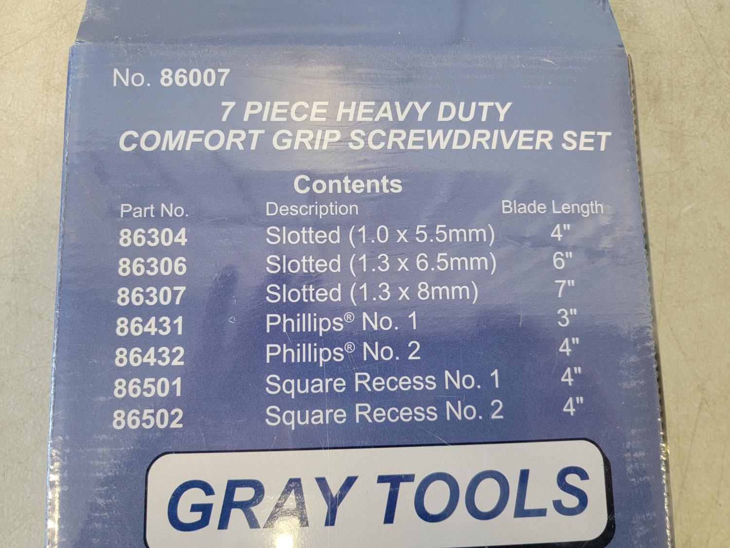 5160 Gray Tools 7 Piece Heavy Duty Screwdriver Set & 7 Piece Metric Nut Driver Set (Unused)