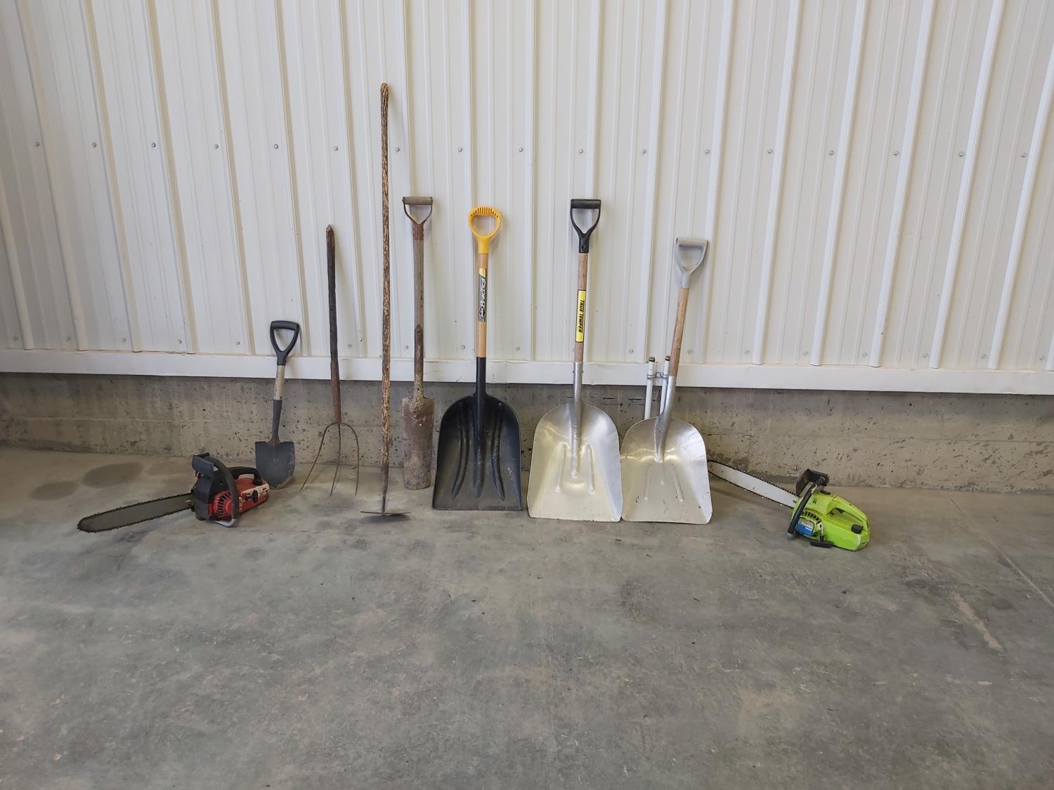 5457 Qty of Gardening Tools and (2) Chainsaws