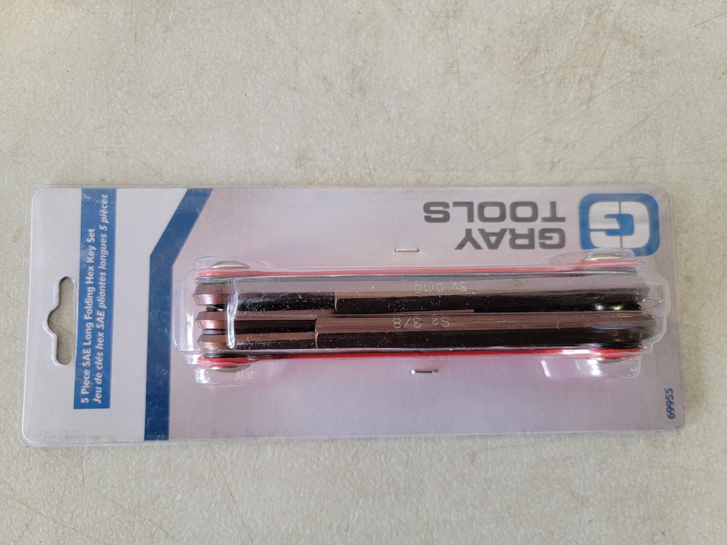 22 piece SAE and metric hex key set, 5 piece long folding hex key set, 9 piece SAE long folding hex keys set