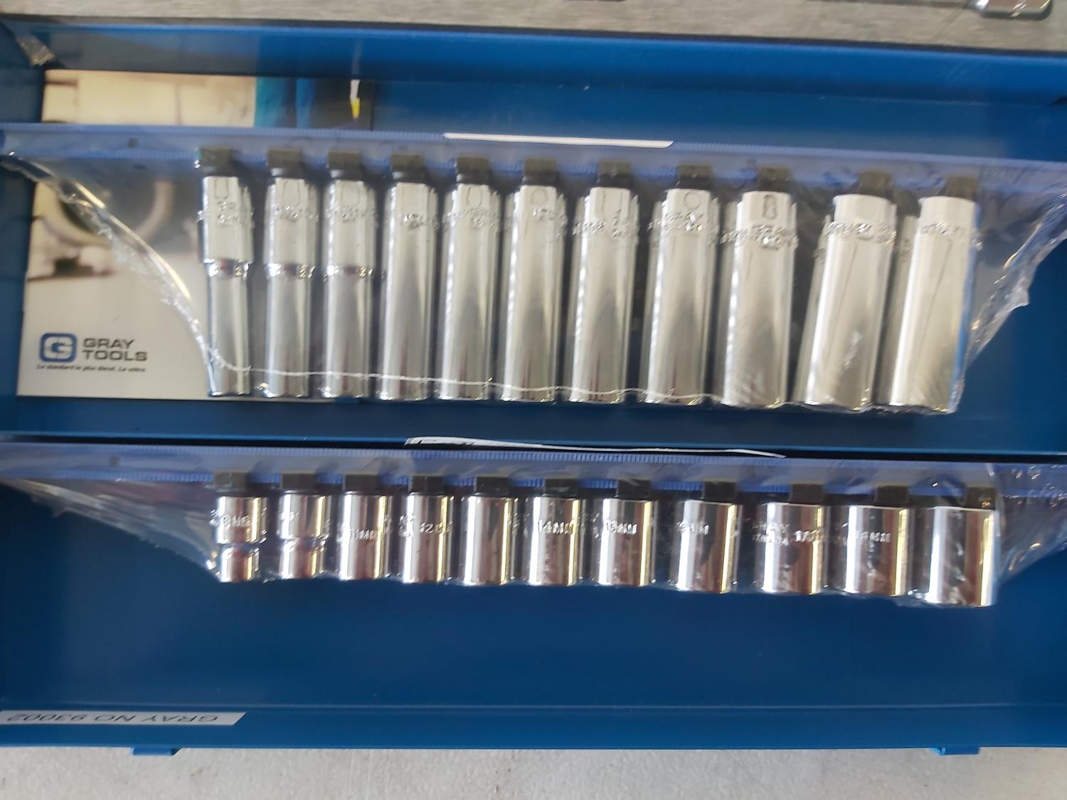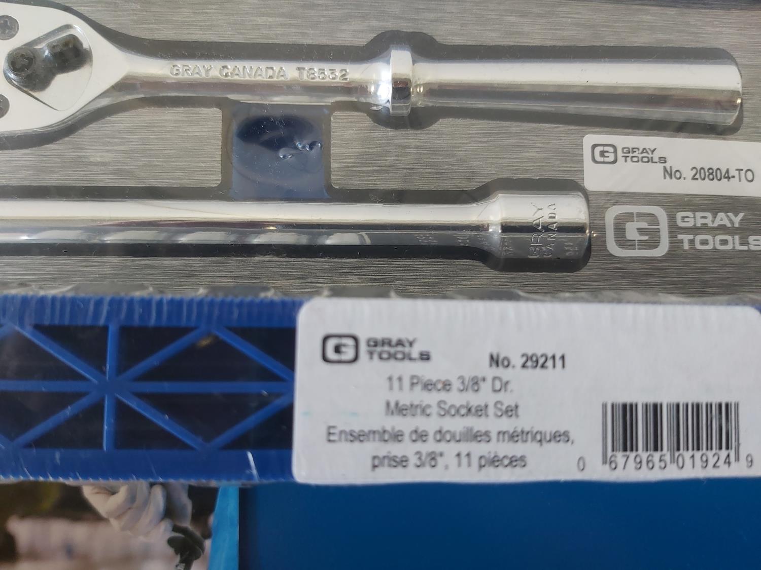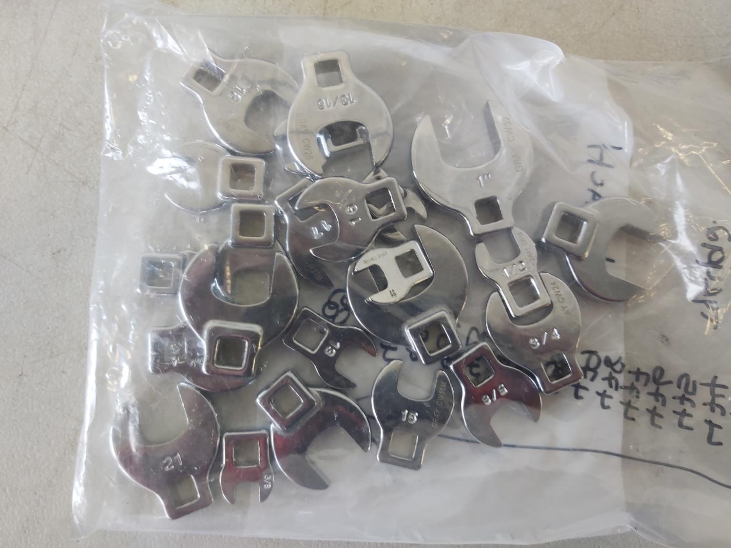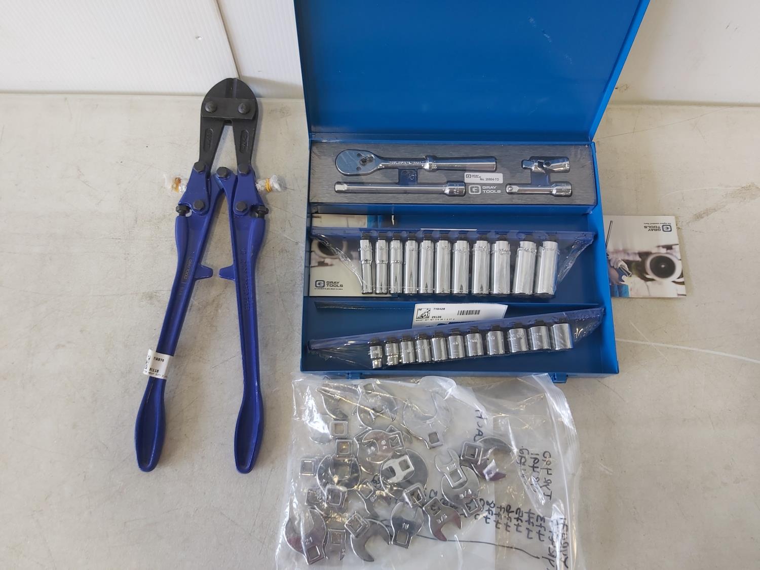 Quantity of metric and SAE crows feet, 3/8 drive socket set, 18 inch bolt cutters