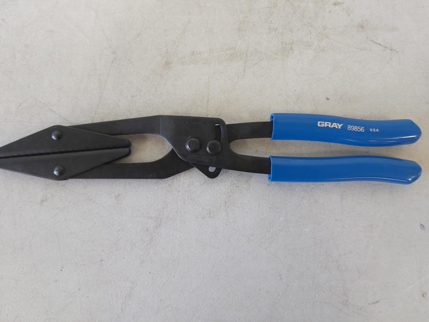 (4) Grip-on vise grip pliers, micro grip 2000 clamp, 14 inch hose pliers, 9/16 / 5/8 ratchet wrench, Gray Tools sign