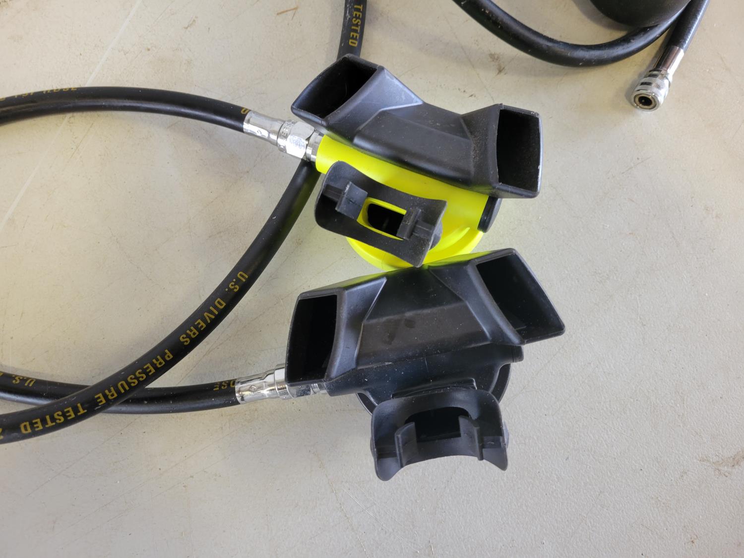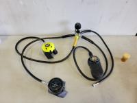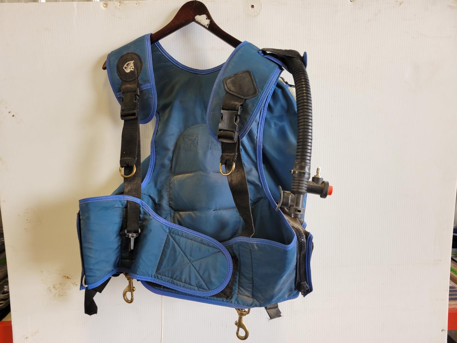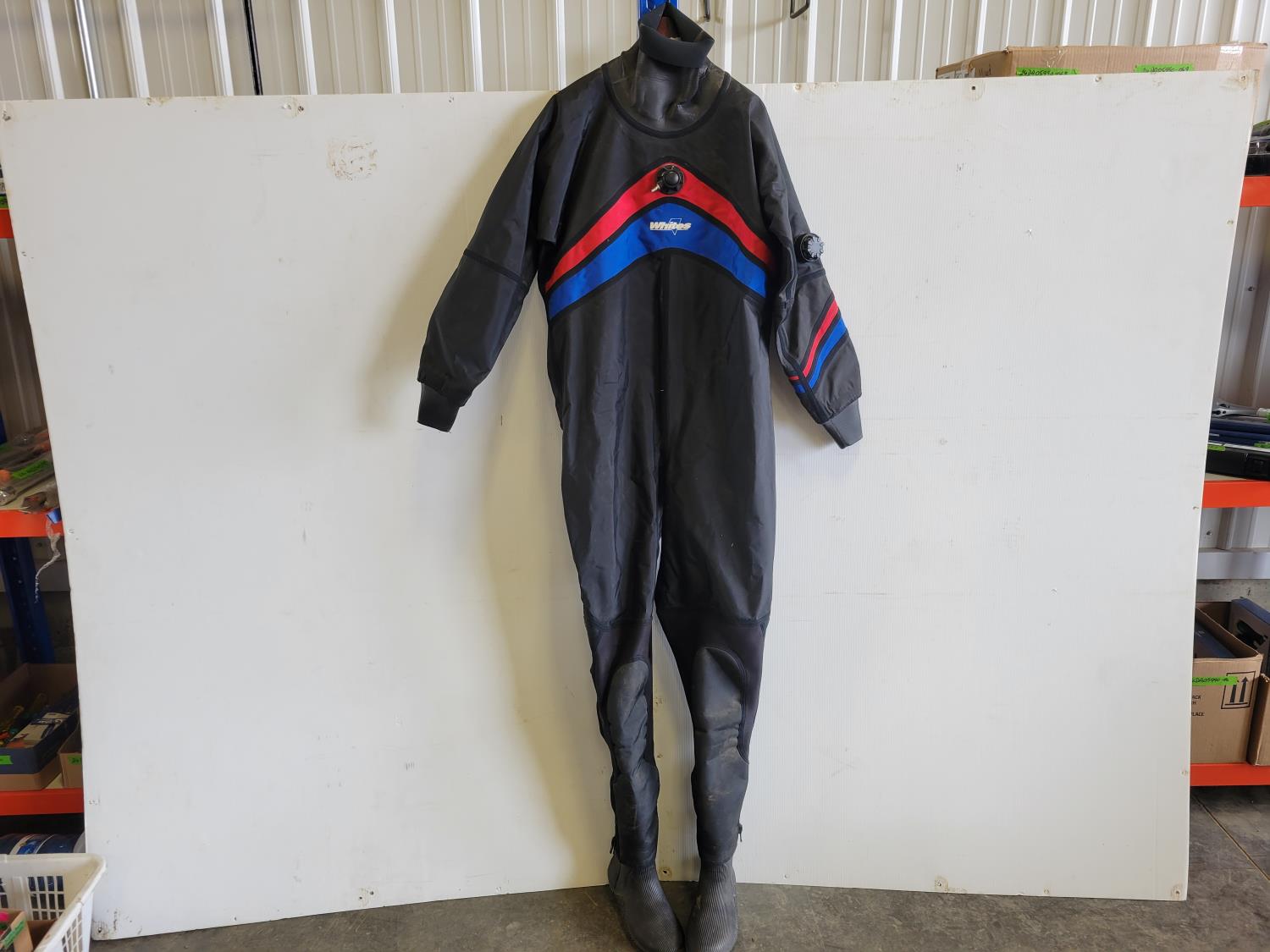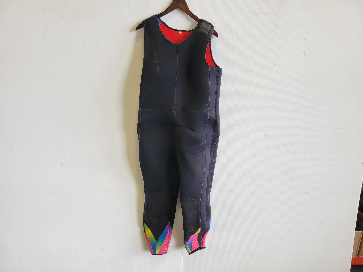 Wetsuits, men's dry scuba suit, (2) buoyancy compensators, 80 cu ft aluminum tank, assorted diving gear, diving mask, knives, flashlight, weights