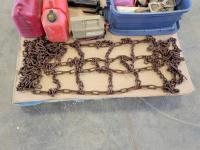 Set of tire chains, (2) jerry cans, jack-all, Termo Equalizer 10 deep cycle 12V battery charger, grease gun
