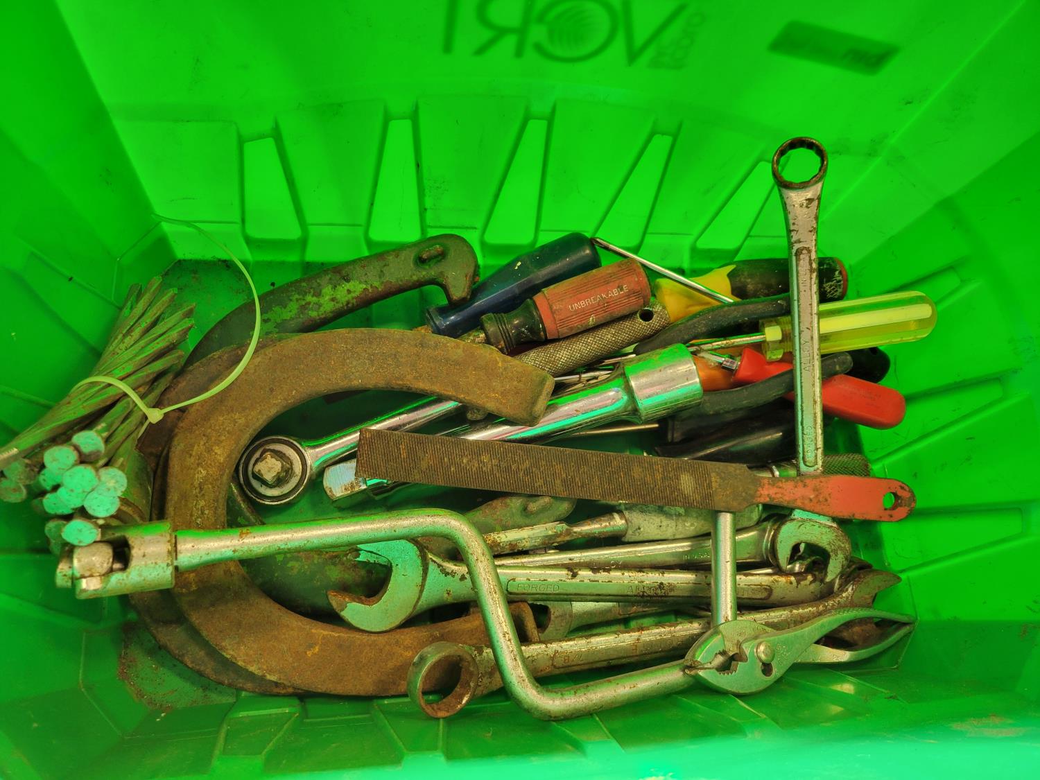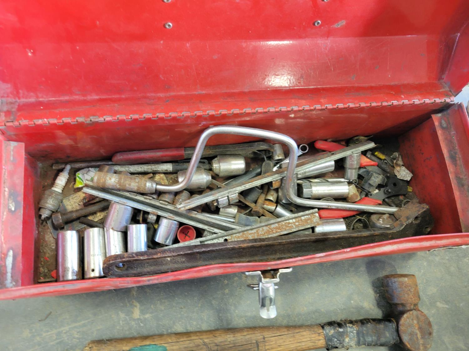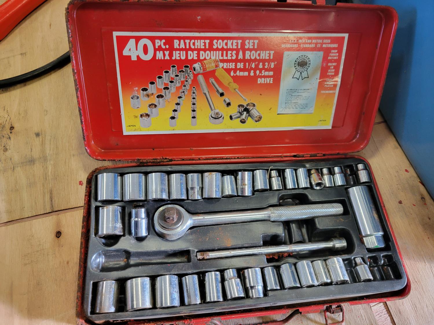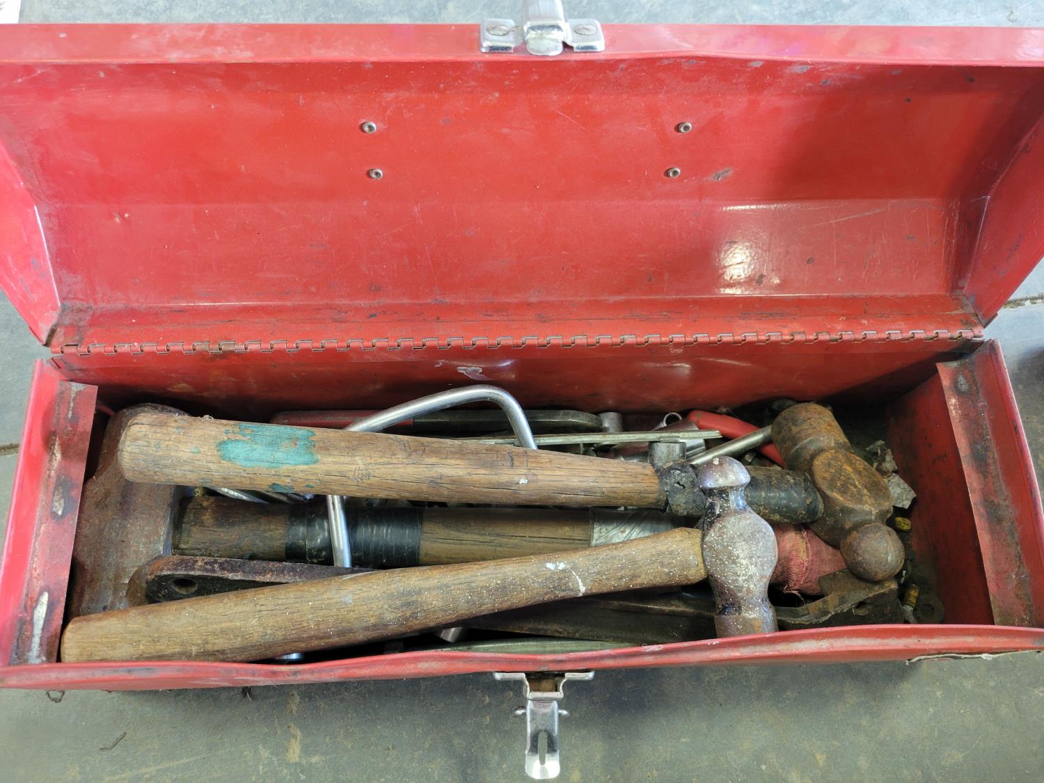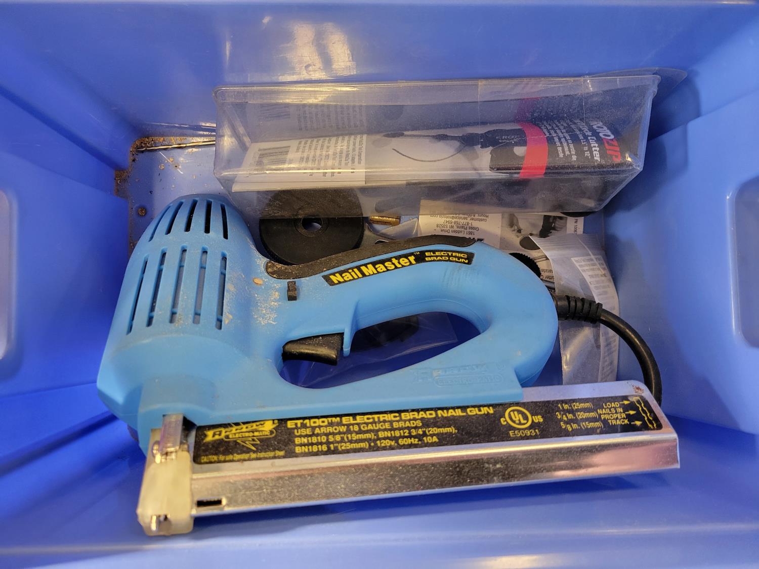 (2) jerry cans, hand tools, extension cords, Black & Decker circular saw, socket set, extension cords