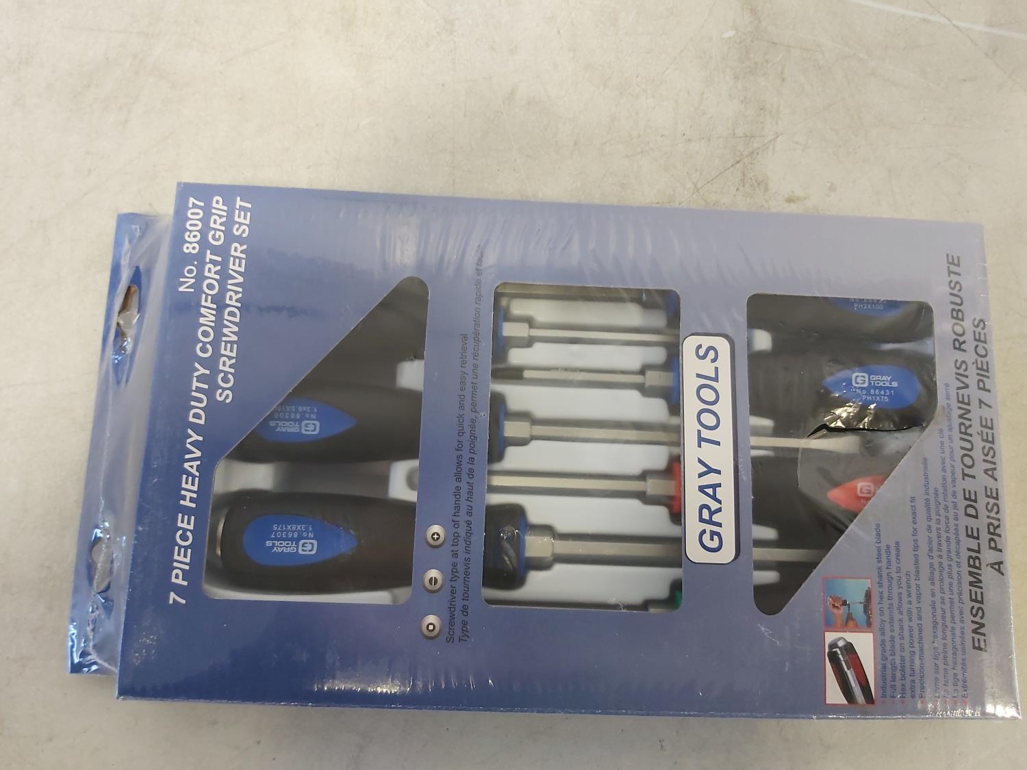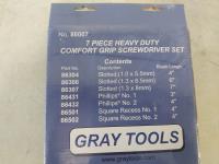 7 piece metric nut drivers Gray Tools, 5 piece vise grip general service set Grip-on, 7 piece heavy duty screwdriver set Gray Tools