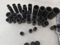 (4) 1/2 inch drive metric sockets size from 10 mm to 30 mm, (3) various size drive adapters, 1/2 inch drive ratchet, 1/2 inch drive breaker bar, (3) 1/2 inch drive extensions