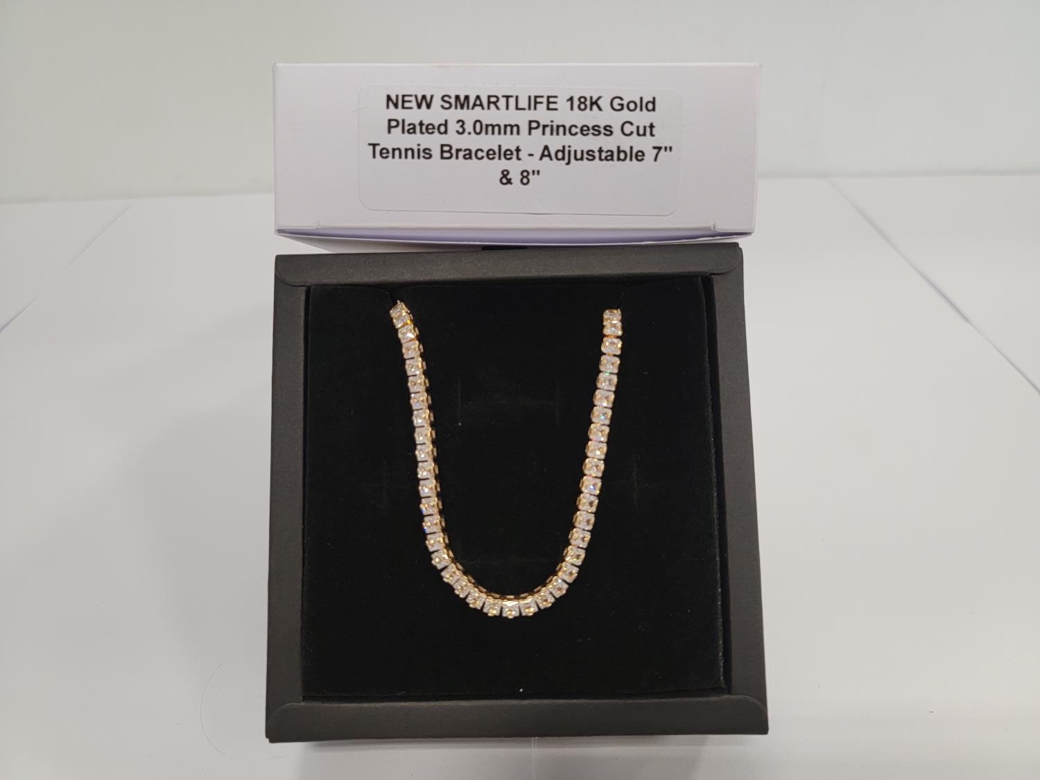5048 Smartlife 18K Gold Plated 3.0 mm Princess Cut Tennis Bracelet (Unused)