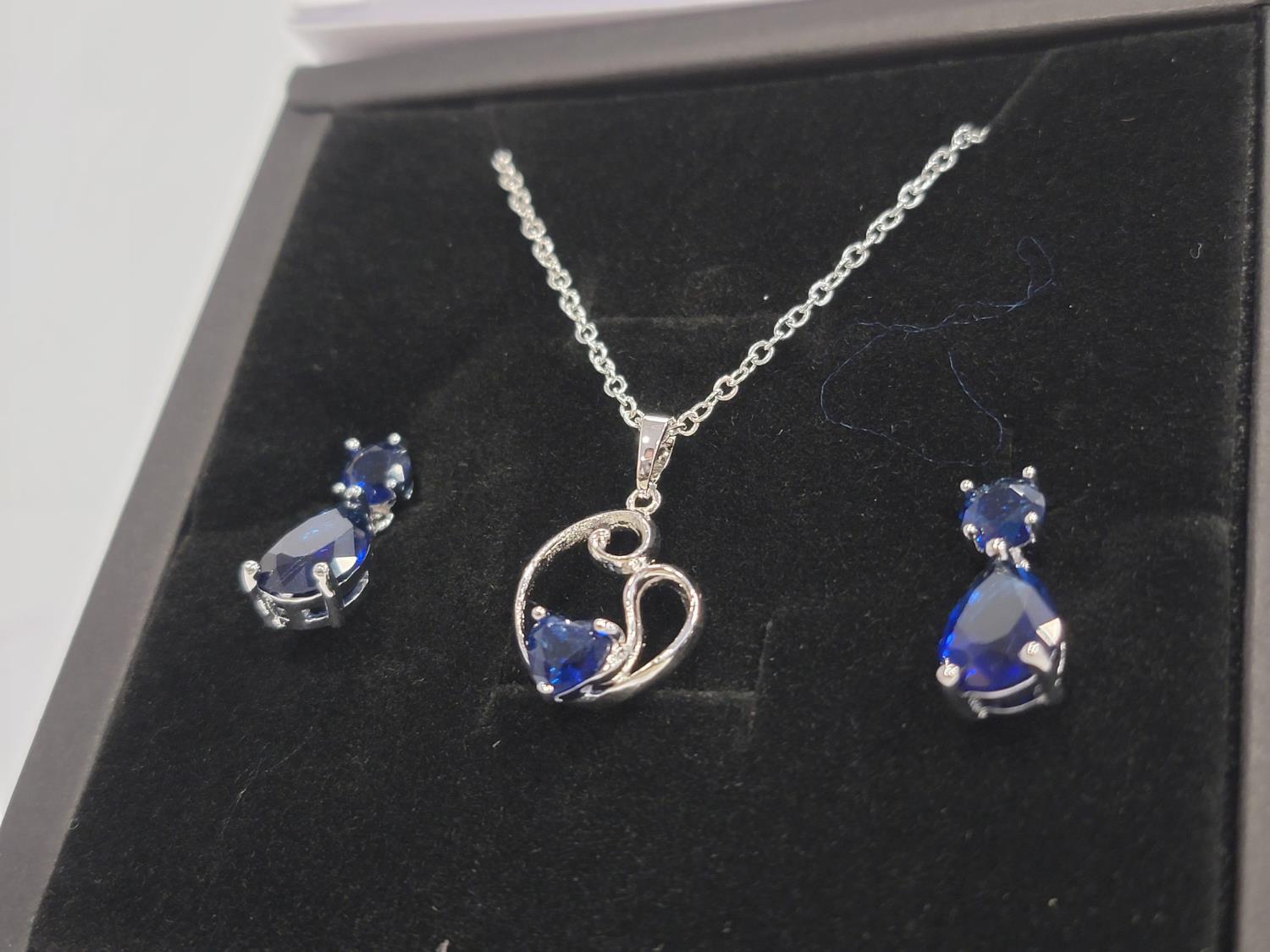 5045 Smartlife Platinum Plated 2 Piece Blue Sapphire Set (Unused)