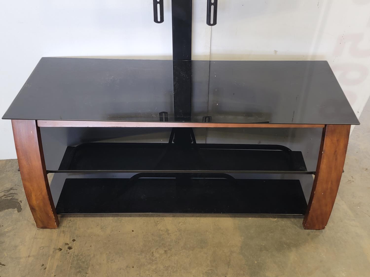 48 inch w x 19 inch d x 22 inch h, glass top shelf, 28 inch mount, 135 lb maximum mount weight