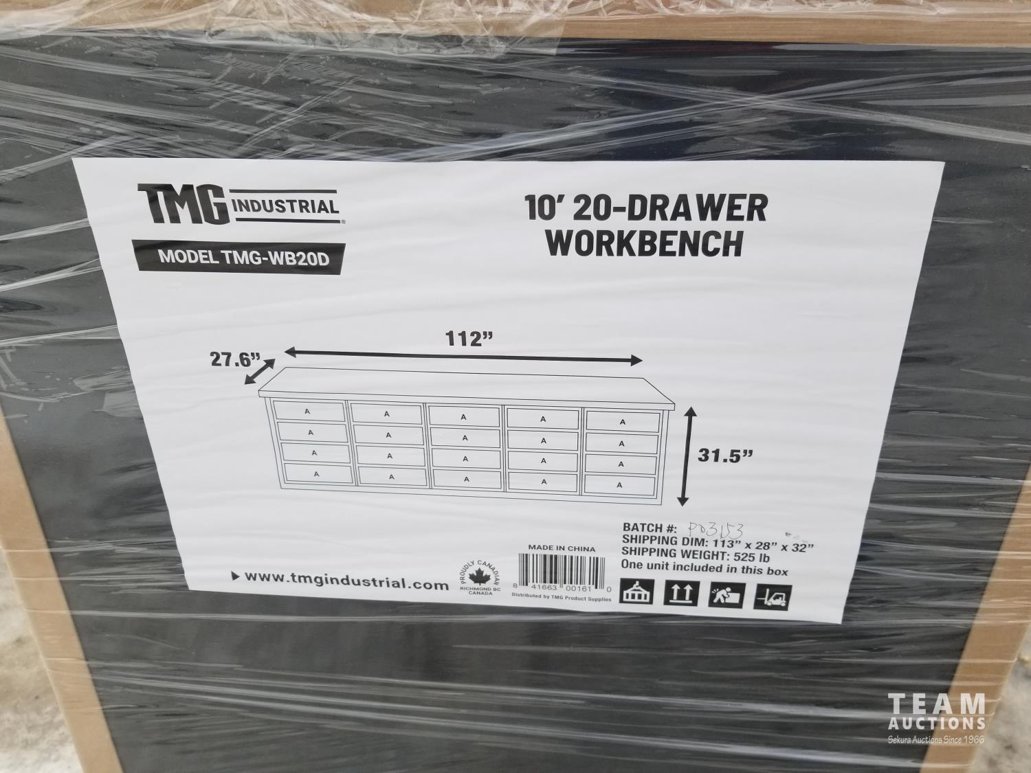 71 TMG Industrial WB20D 10 Ft 20-Drawer Workbench (Unused)
