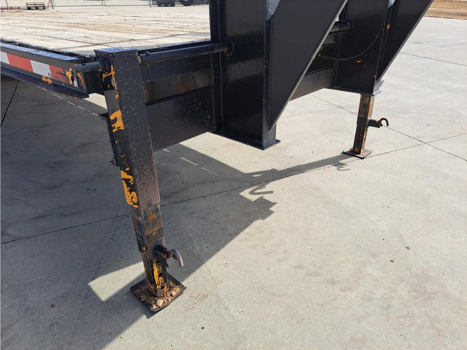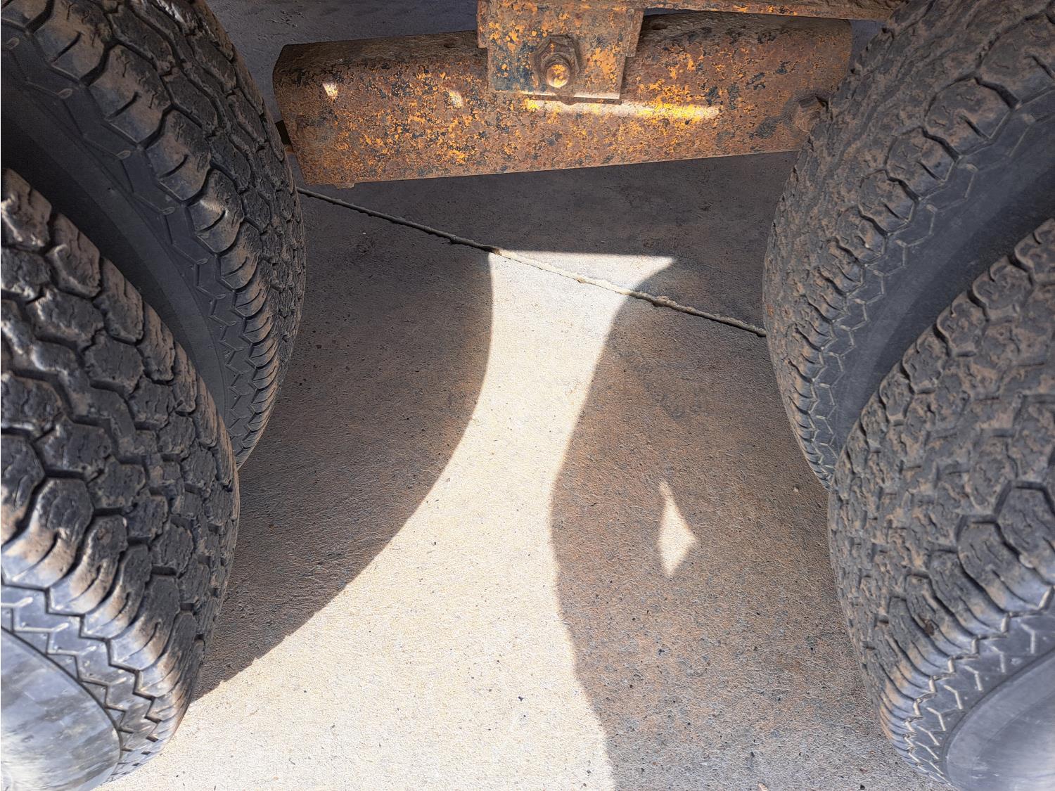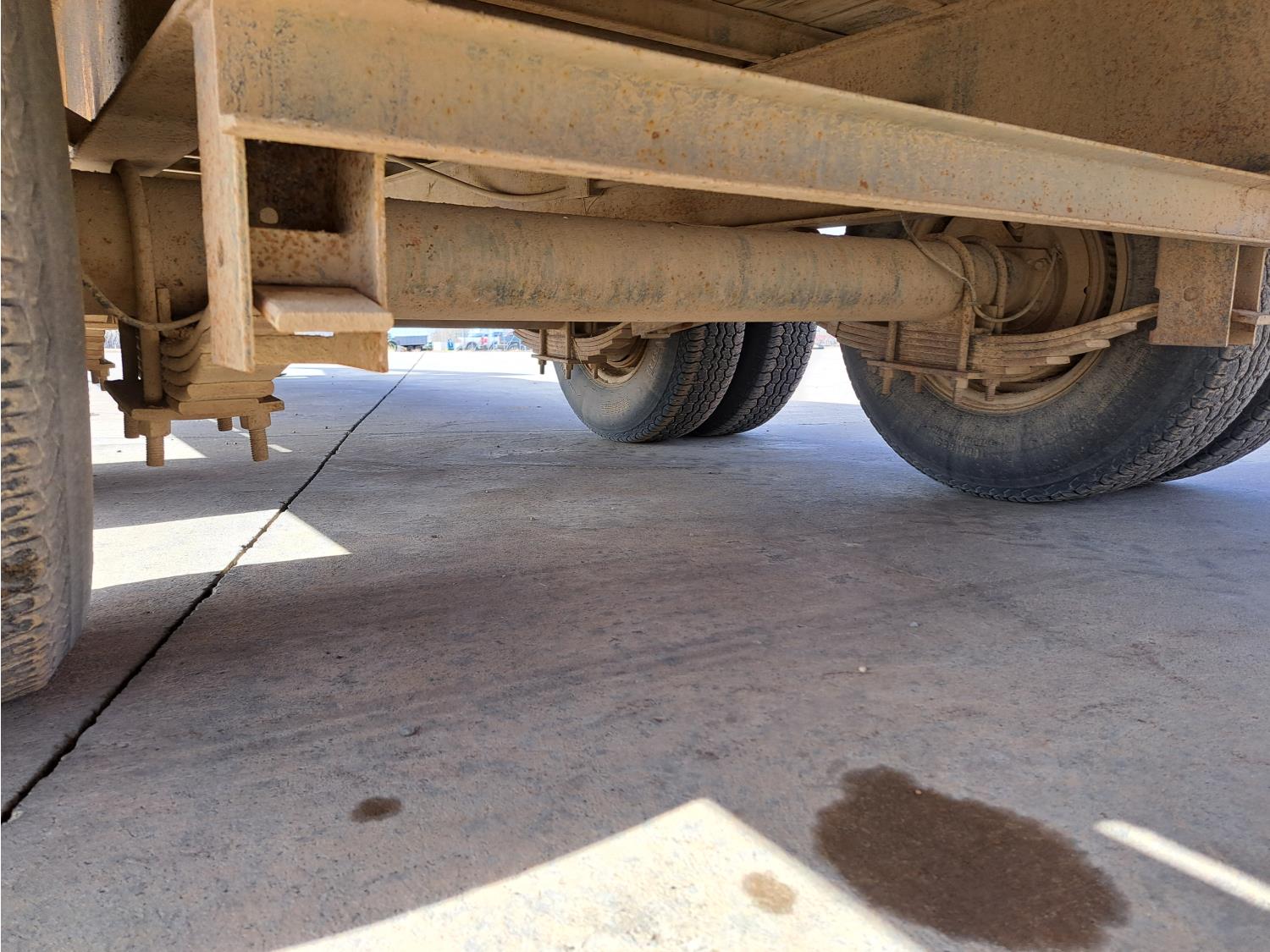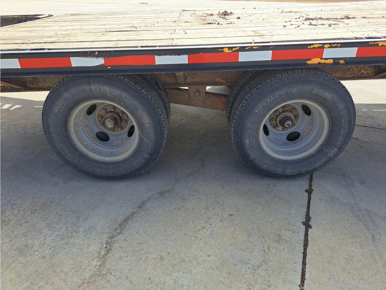 100 inch wide deck, wood deck, stake pockets, rub rails, 5 ft beaver tails, spring suspension, 235/85R16 tires