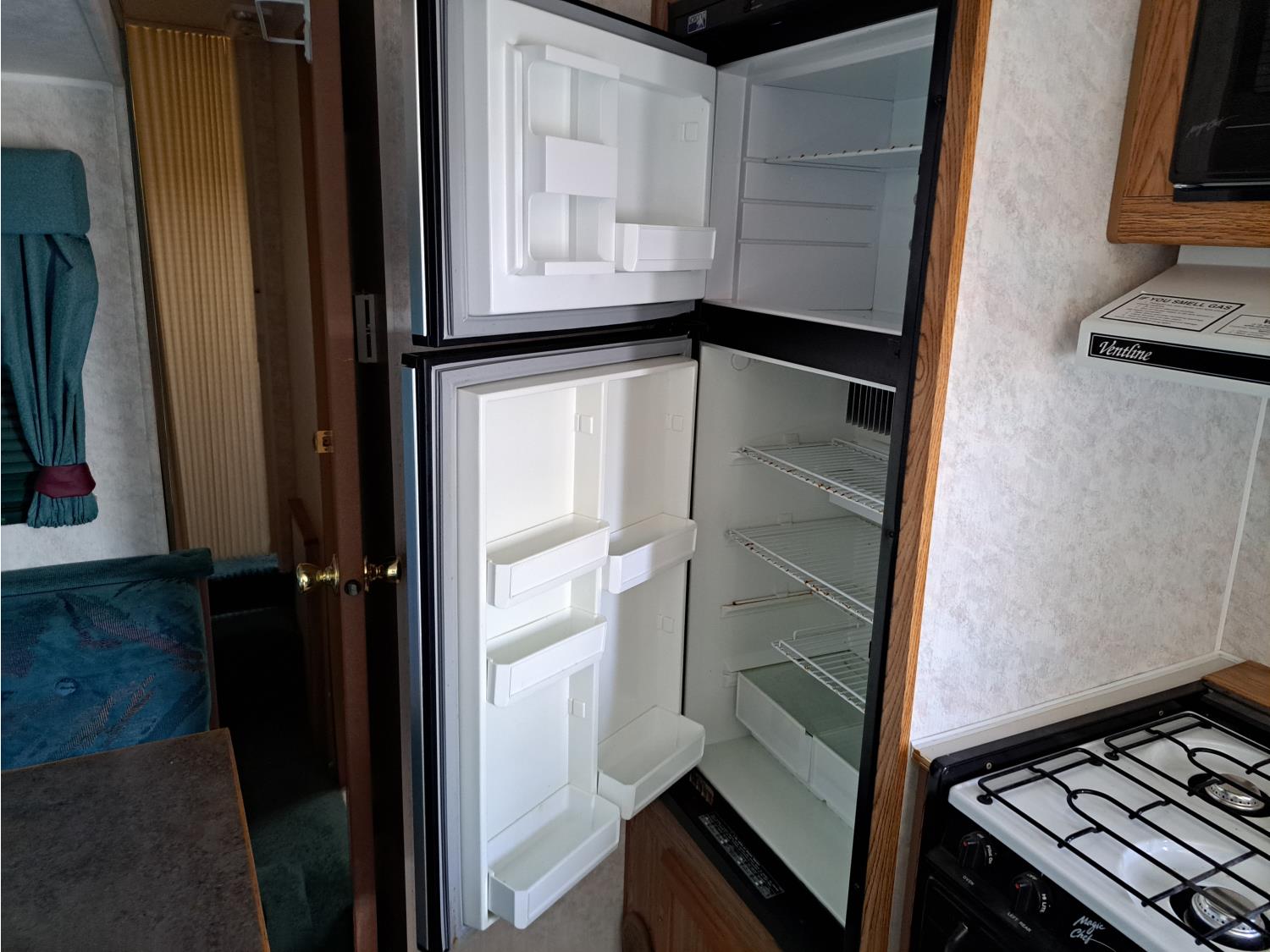stove, fridge, microwave, full bath, master bedroom, 1 slide, radio/tap deck, 225/75/R15 tires