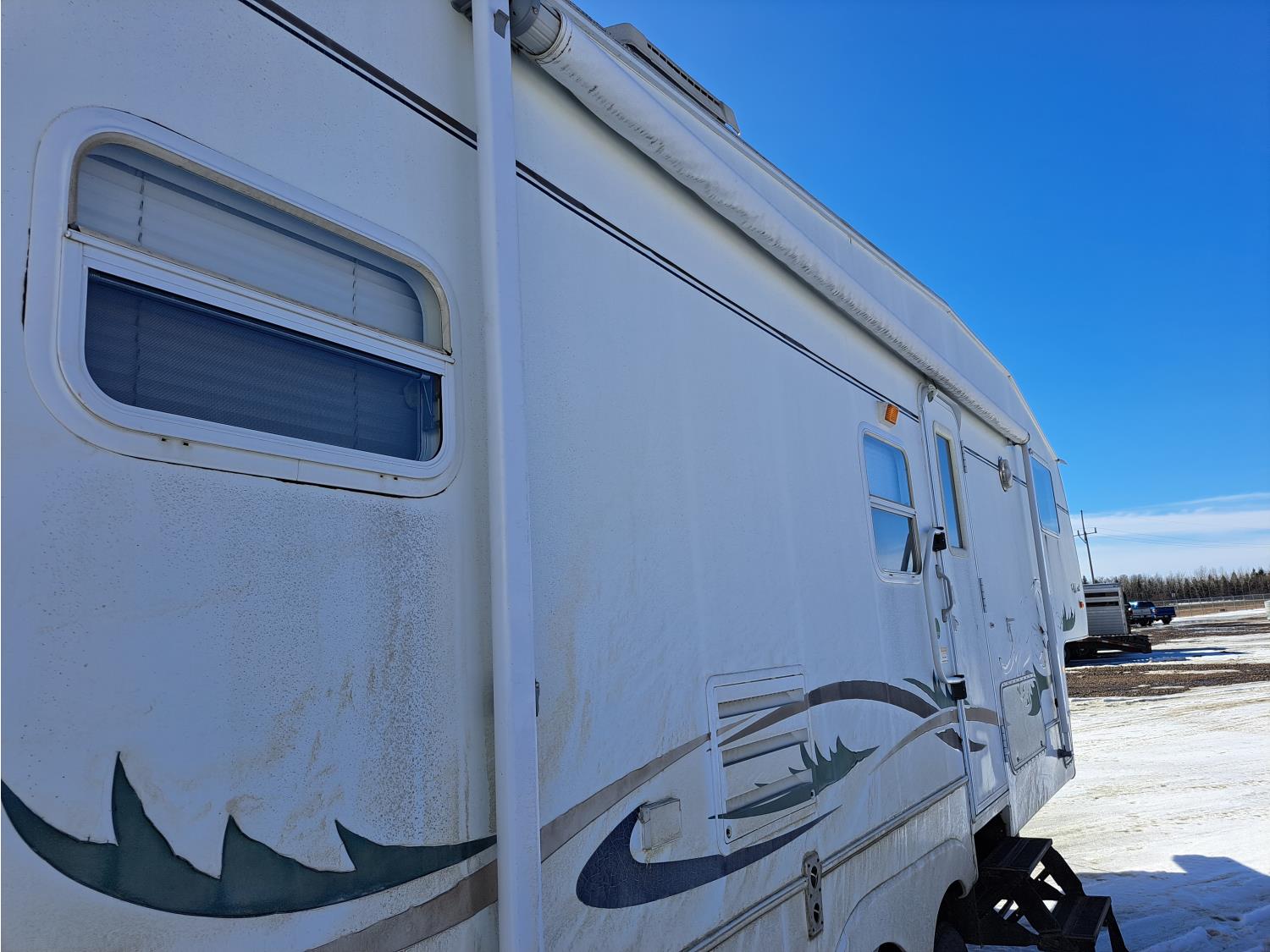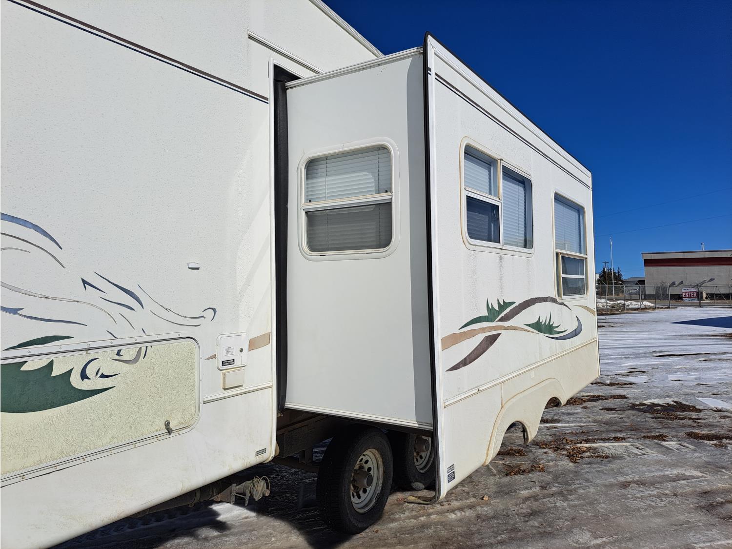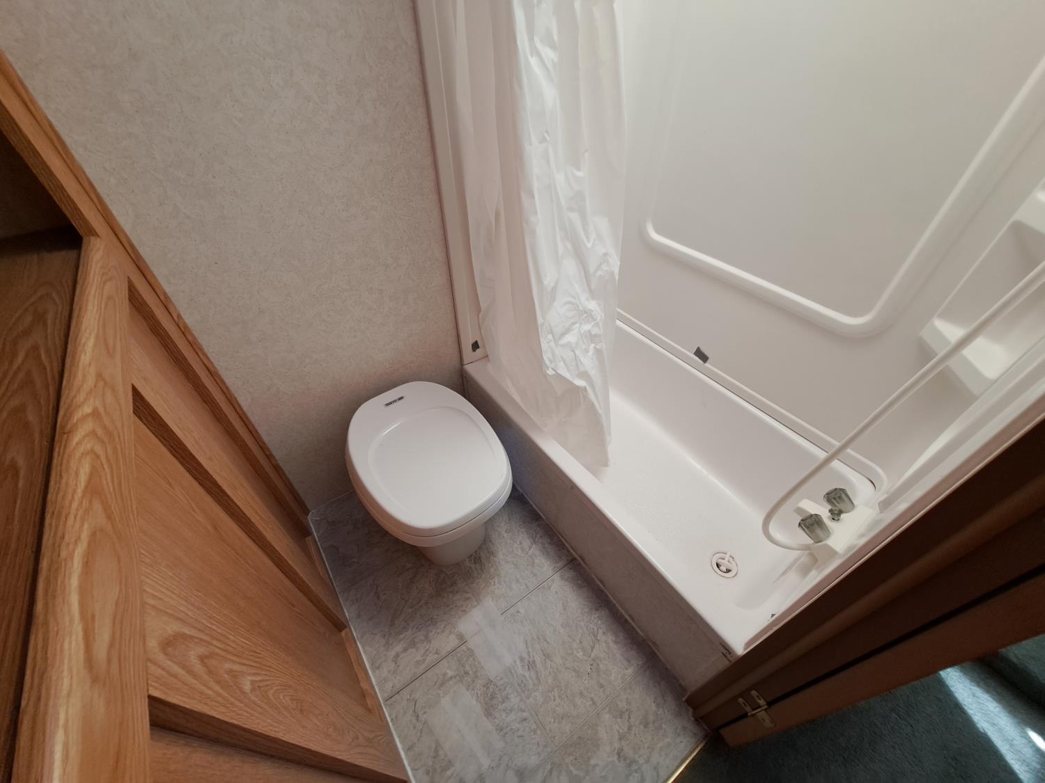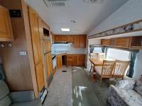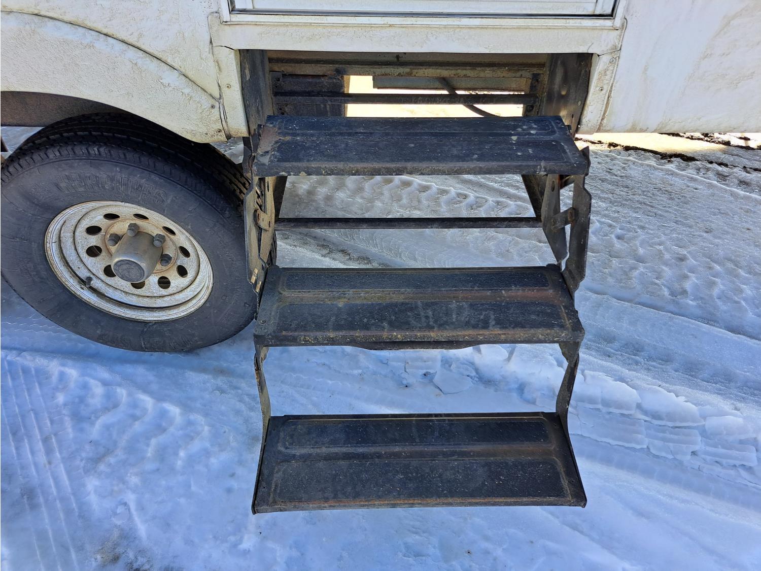 large slide out, 6 inch frame lift, winterized, large bottle tie in, new spare tire, ST225/75R15 tires, 100 watt solar panel, 3000 inverter, upgraded flooring, fridge, stove, microwave, kitchen sink, shower/tub, separate bathroom sink, queen master bed, CD/tape stereo