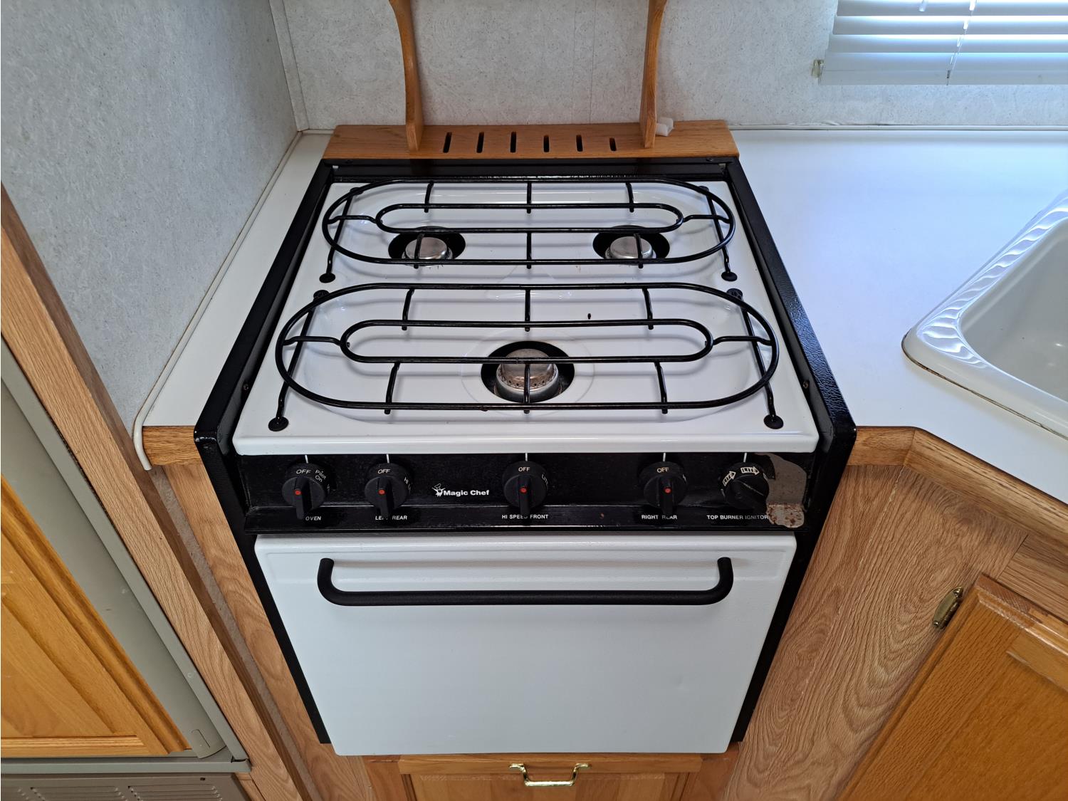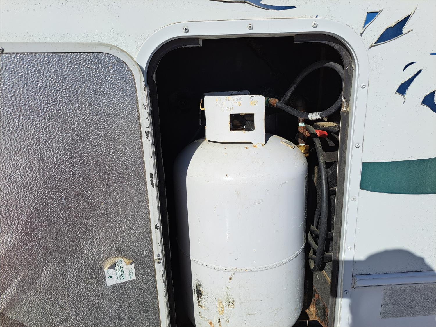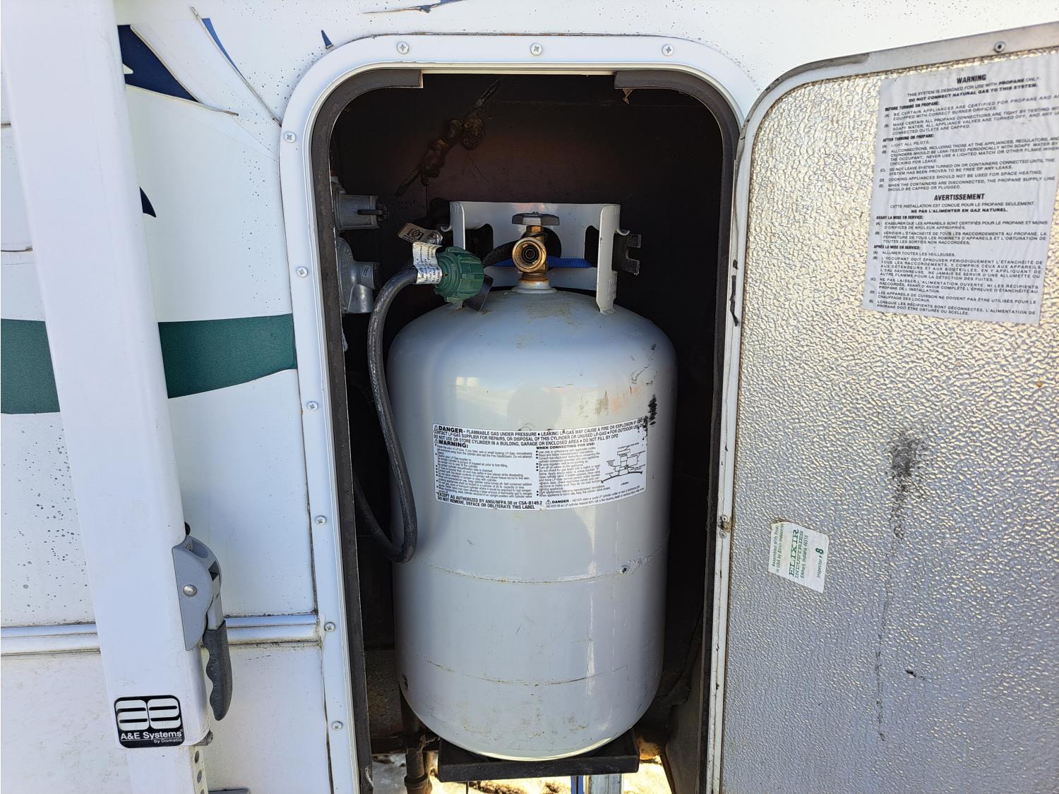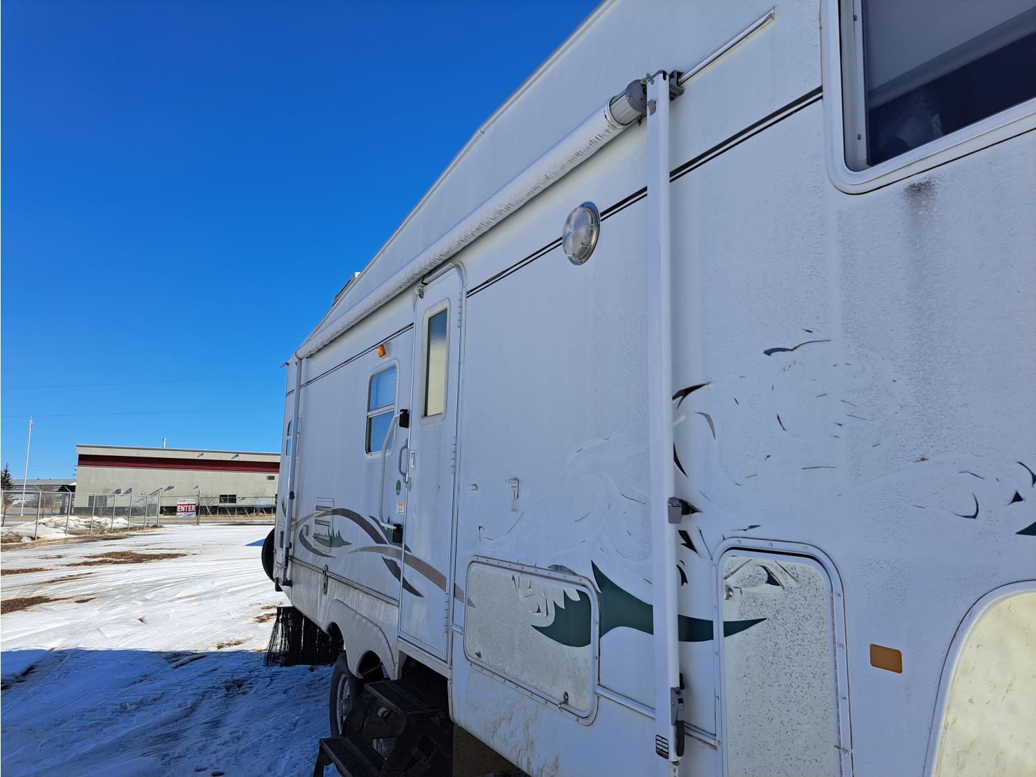 large slide out, 6 inch frame lift, winterized, large bottle tie in, new spare tire, ST225/75R15 tires, 100 watt solar panel, 3000 inverter, upgraded flooring, fridge, stove, microwave, kitchen sink, shower/tub, separate bathroom sink, queen master bed, CD/tape stereo