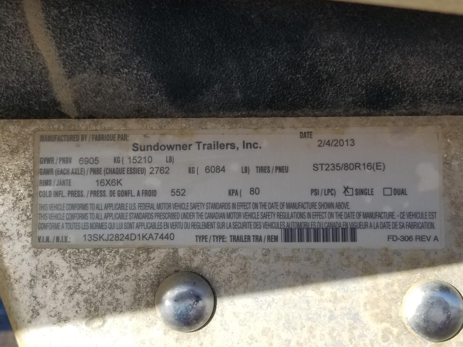 213 2013 Sundowner T/A 20 Ft Fifth Wheel Stock Combo Trailer