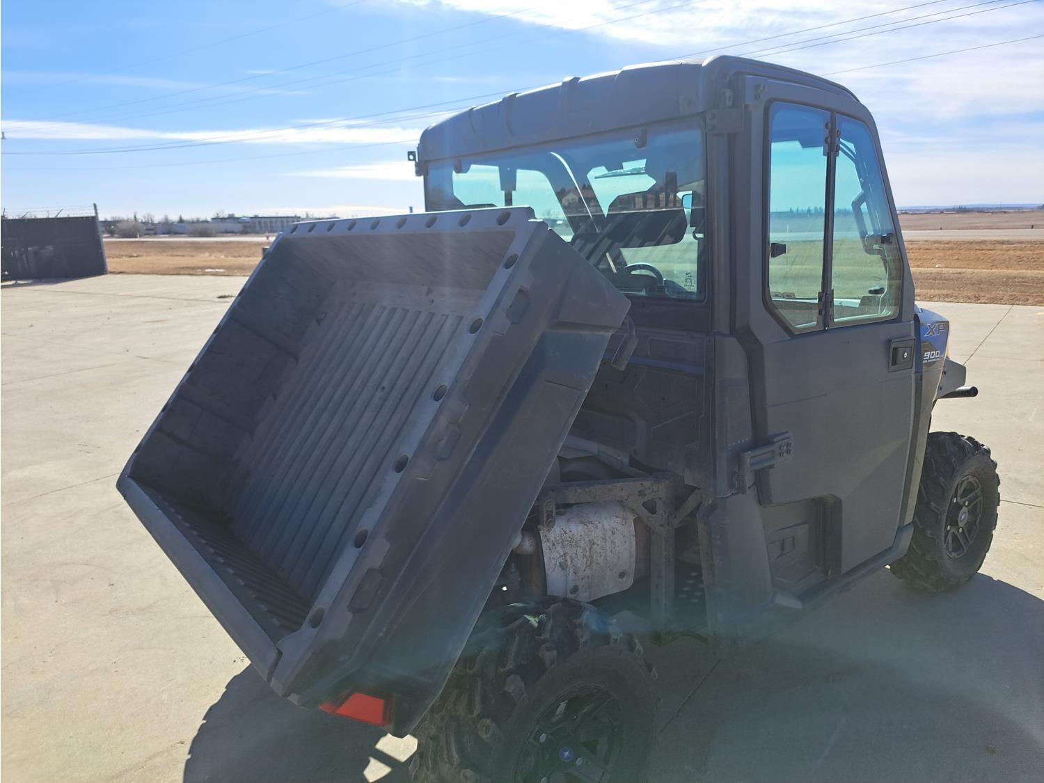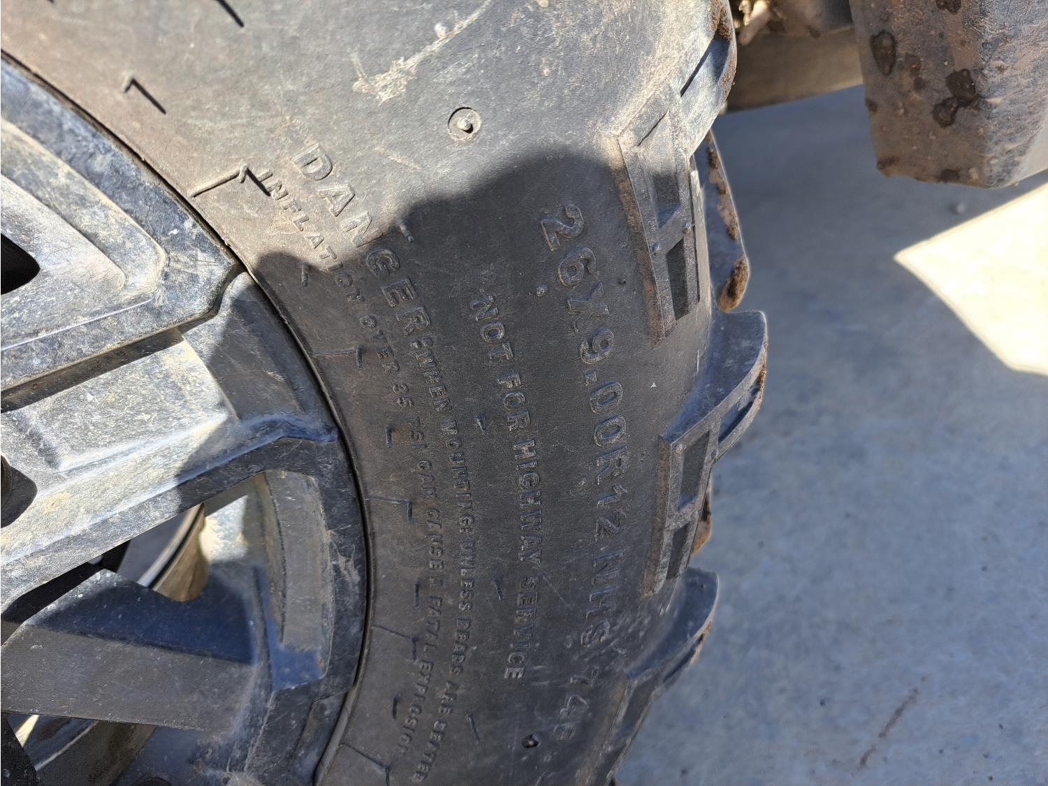 900 cc engine, automatic transmission, enclosed cab, A/C, heater, windshield, power steering, front winch, manual dump box, receiver hitch, independent suspension, 26X9.00R12 front tires, 26X11.00R12 rear tires