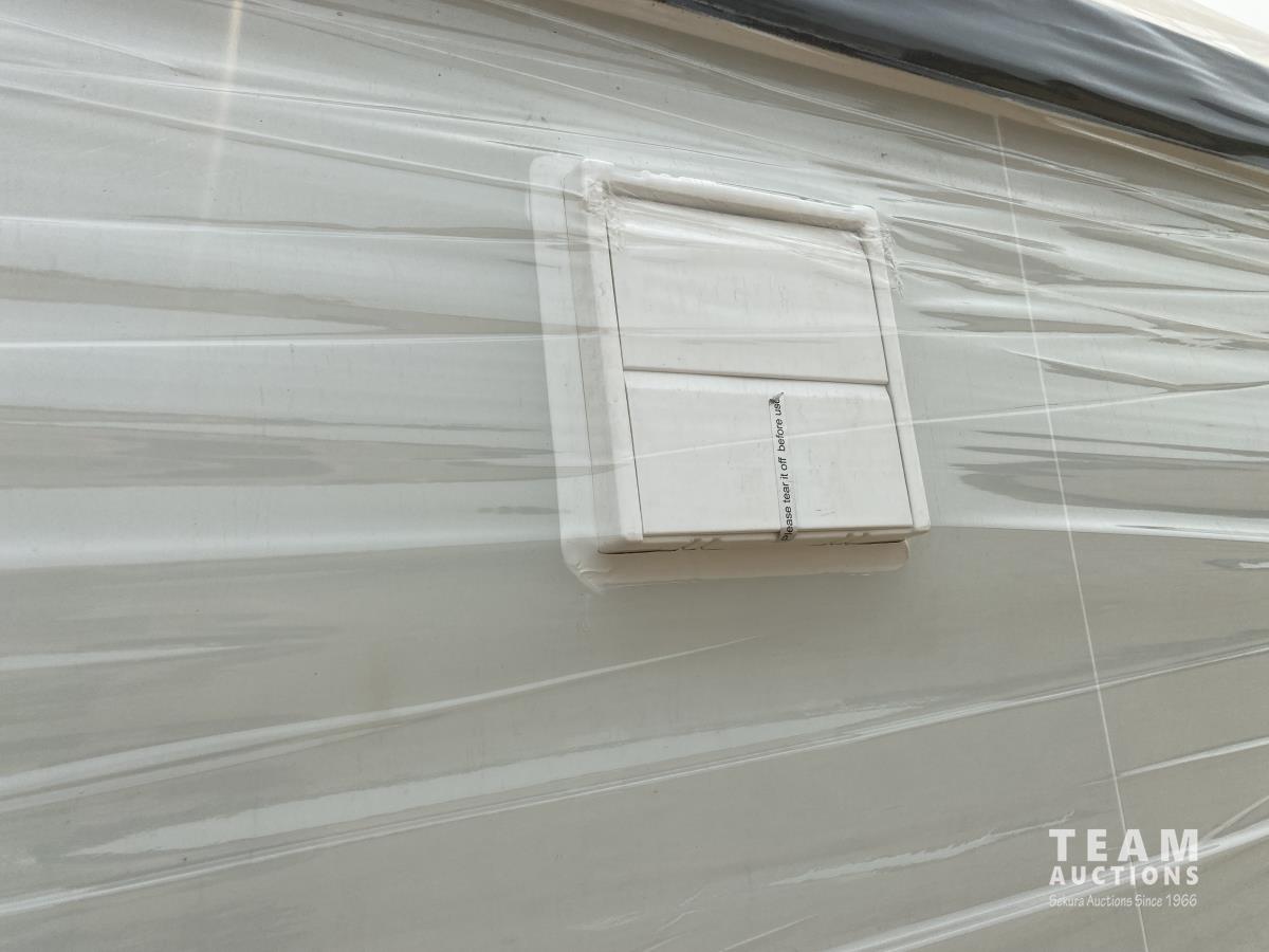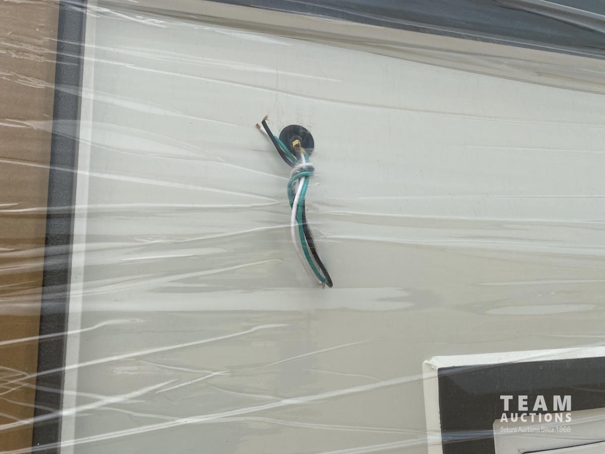 7 ft x 5 ft x 7 ft, 220v/110v, light, window, paper towel holder, sink, safety switch, fork pockets, lift hooks, hot & cold water intake, 1540 lb.