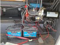large slide out, 6 inch frame lift, winterized, large bottle tie in, new spare tire, ST225/75R15 tires, 100 watt solar panel, 3000 inverter, upgraded flooring, fridge, stove, microwave, kitchen sink, shower/tub, separate bathroom sink, queen master bed, CD/tape stereo