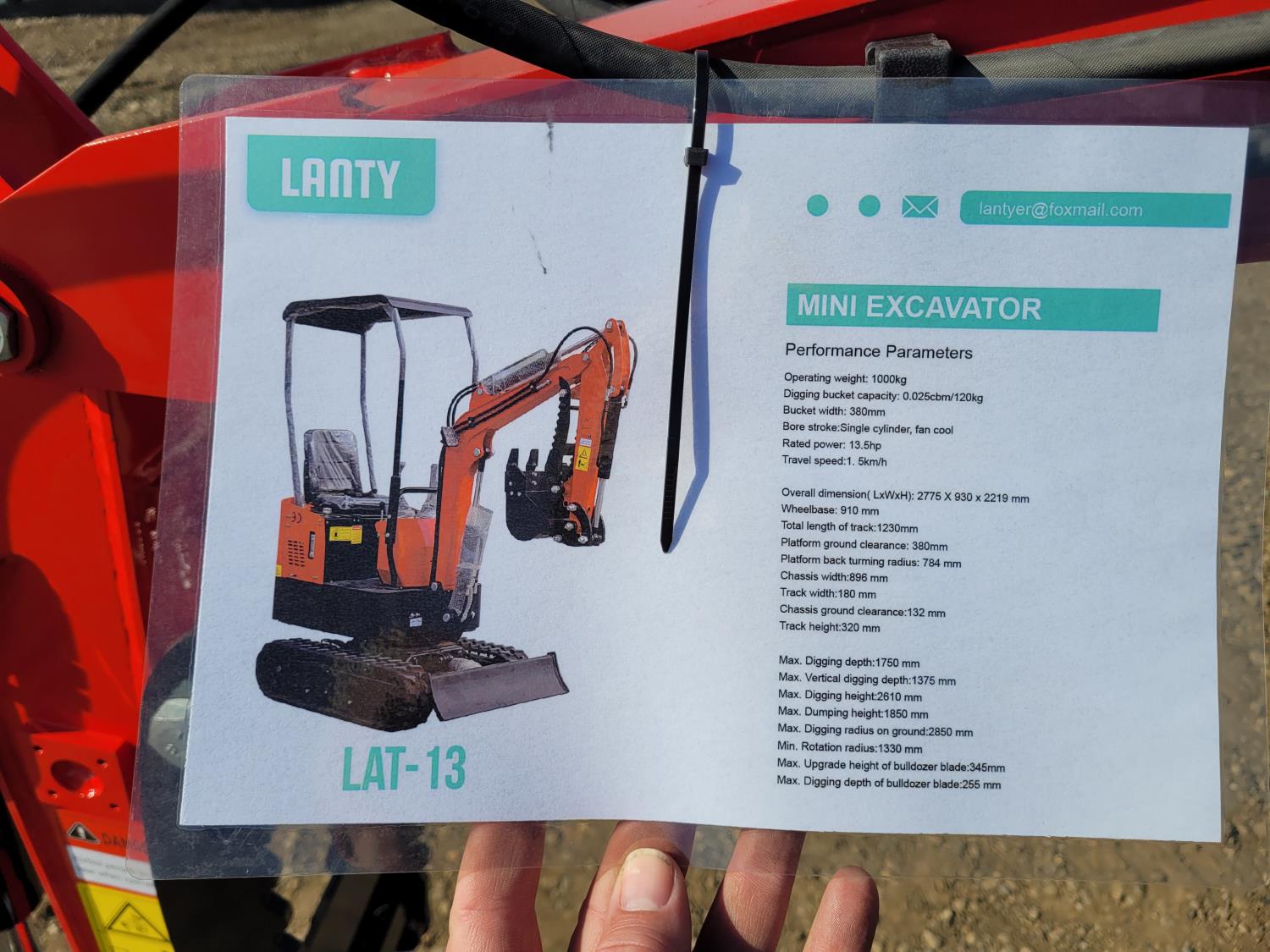 294 2024 Lanty Lat-13 Mini Excavator (Unused)