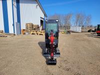 13.5 HP gas engine, closed cabin, rubber track,16 inch digging bucket, hydraulic plumbing, bulldozer blade, manual thumb