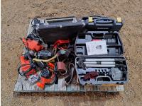 Mastercraft 120v 1/2 impact wrench, Black and decker belt sanders, Black and decker 1/4 plunge router, Black and decker electric planer 3 & 1/4, Skill 1/4 plunge router,1 case 3 & 1/4 inch coiled nails, Amp Probe, Infrared Temp gun, Infrared RPM Gauge, Fall arrest harness x2 lanyards