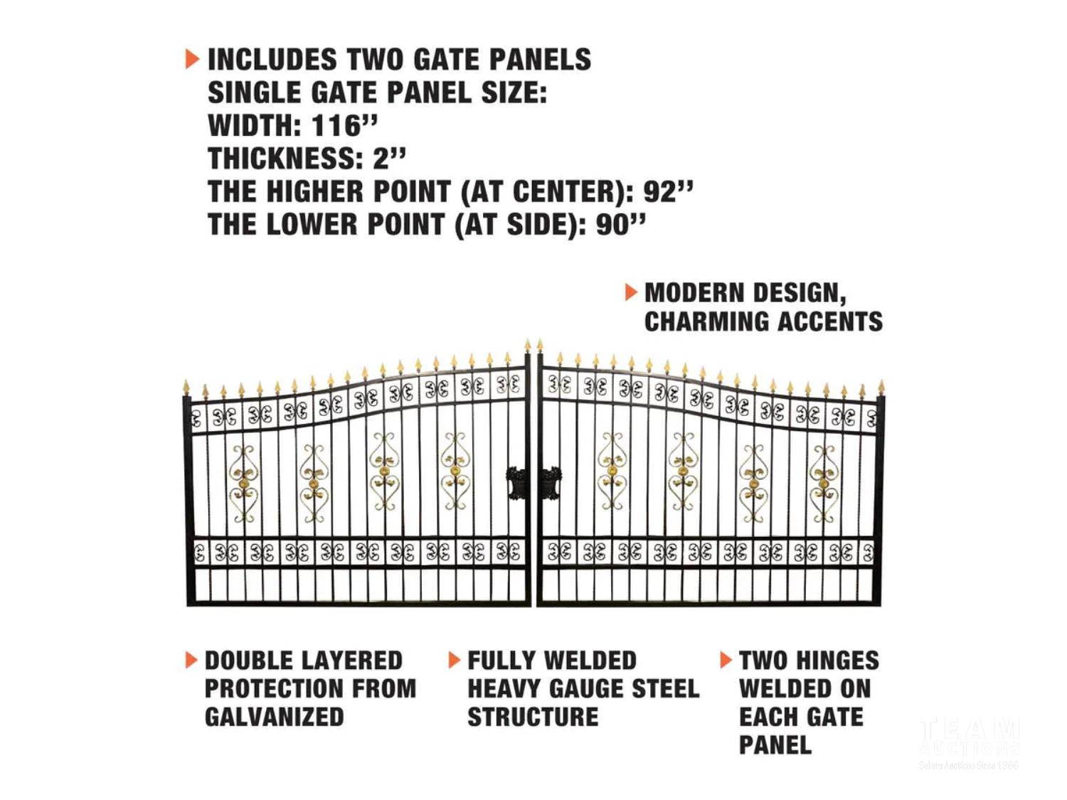 20 ft bi-parting deluxe wrought iron ornamental gate, forged steel, golden decoration, hinges included