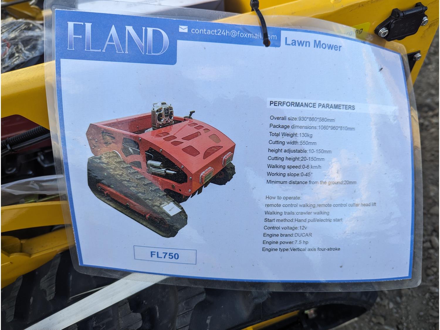107 2024 Fland FL750 Remote Control Lawn Mower (Unused)