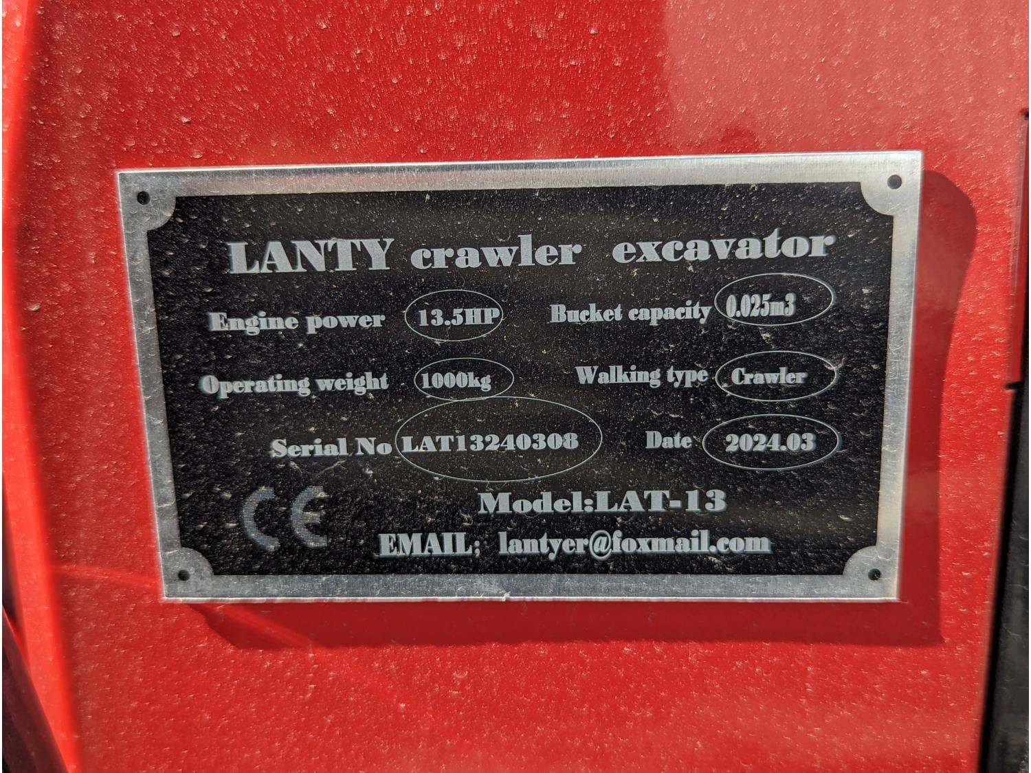 200 2024 Lanty LAT-13 Mini Excavator (Unused)