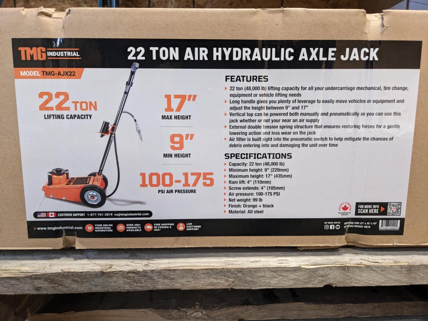 120 TMG Industrial TMG-AJX22 22 Ton Air Hydraulic Axle Jack (Unused)
