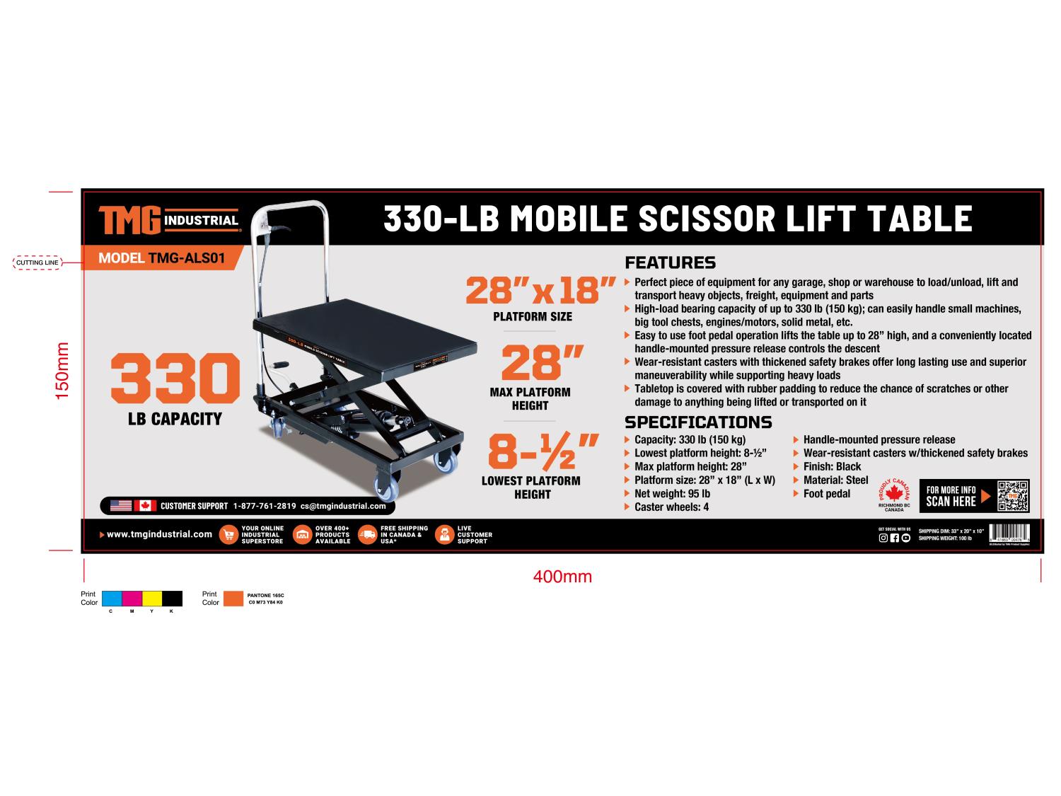 125 TMG Industrial TMG-ALS01 330 lb Mobile Scissor Lift Table (Unused)