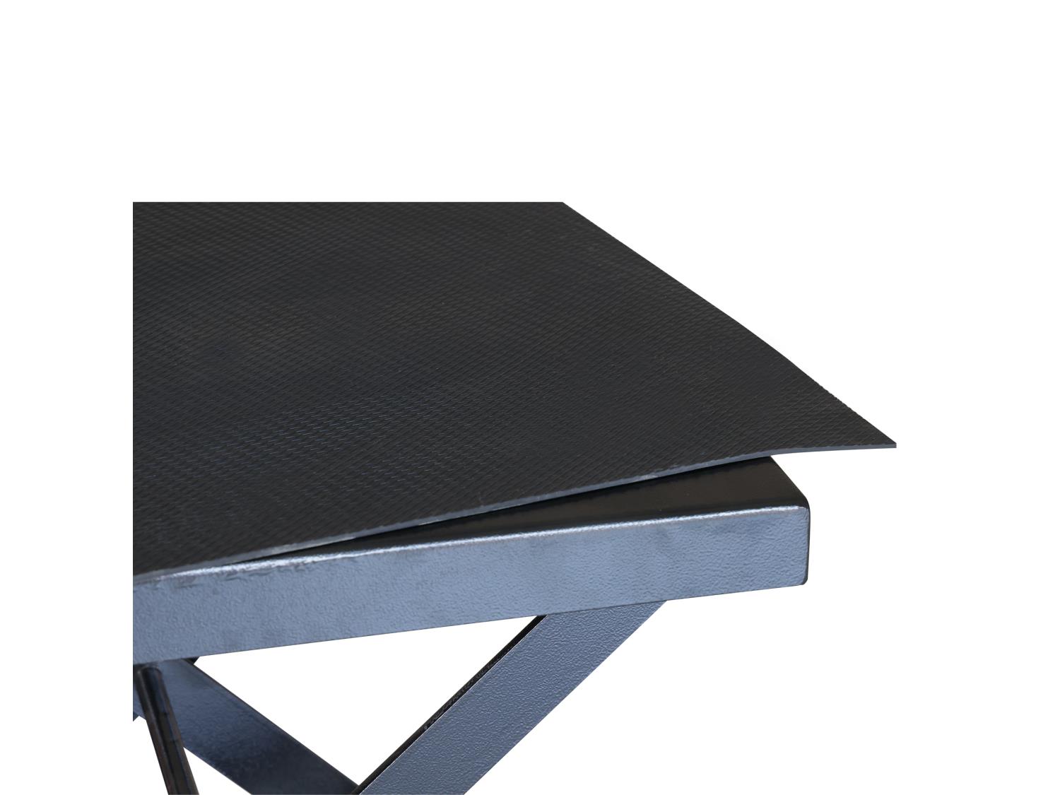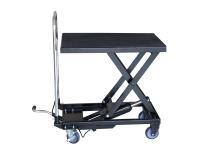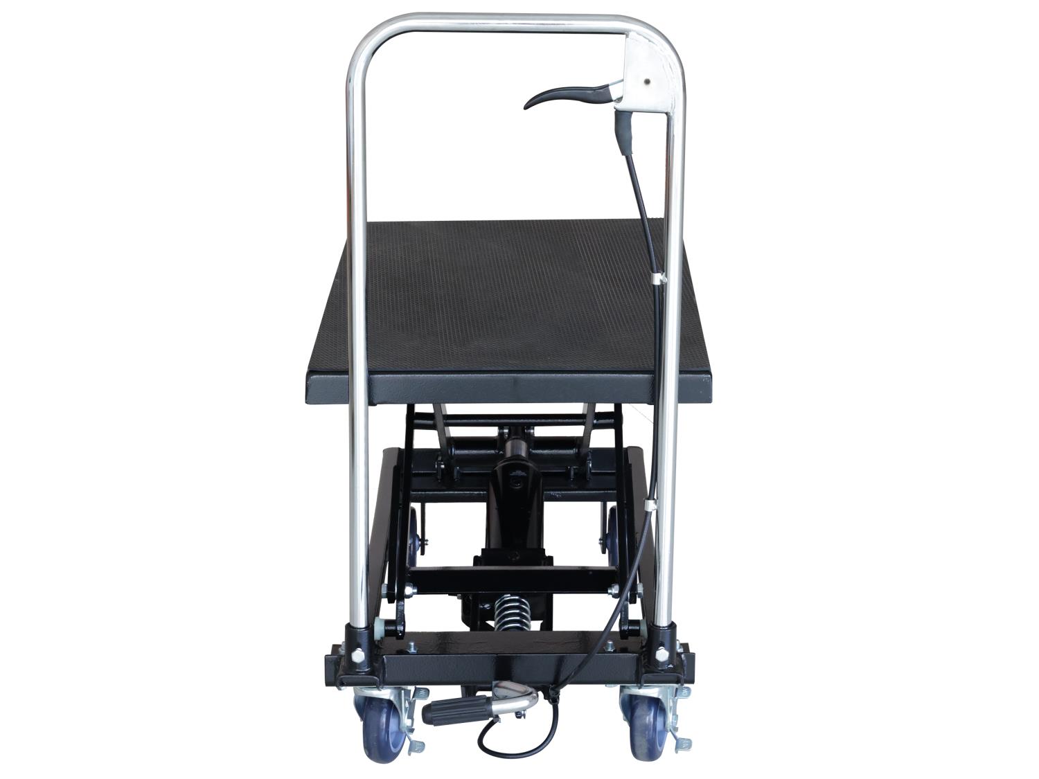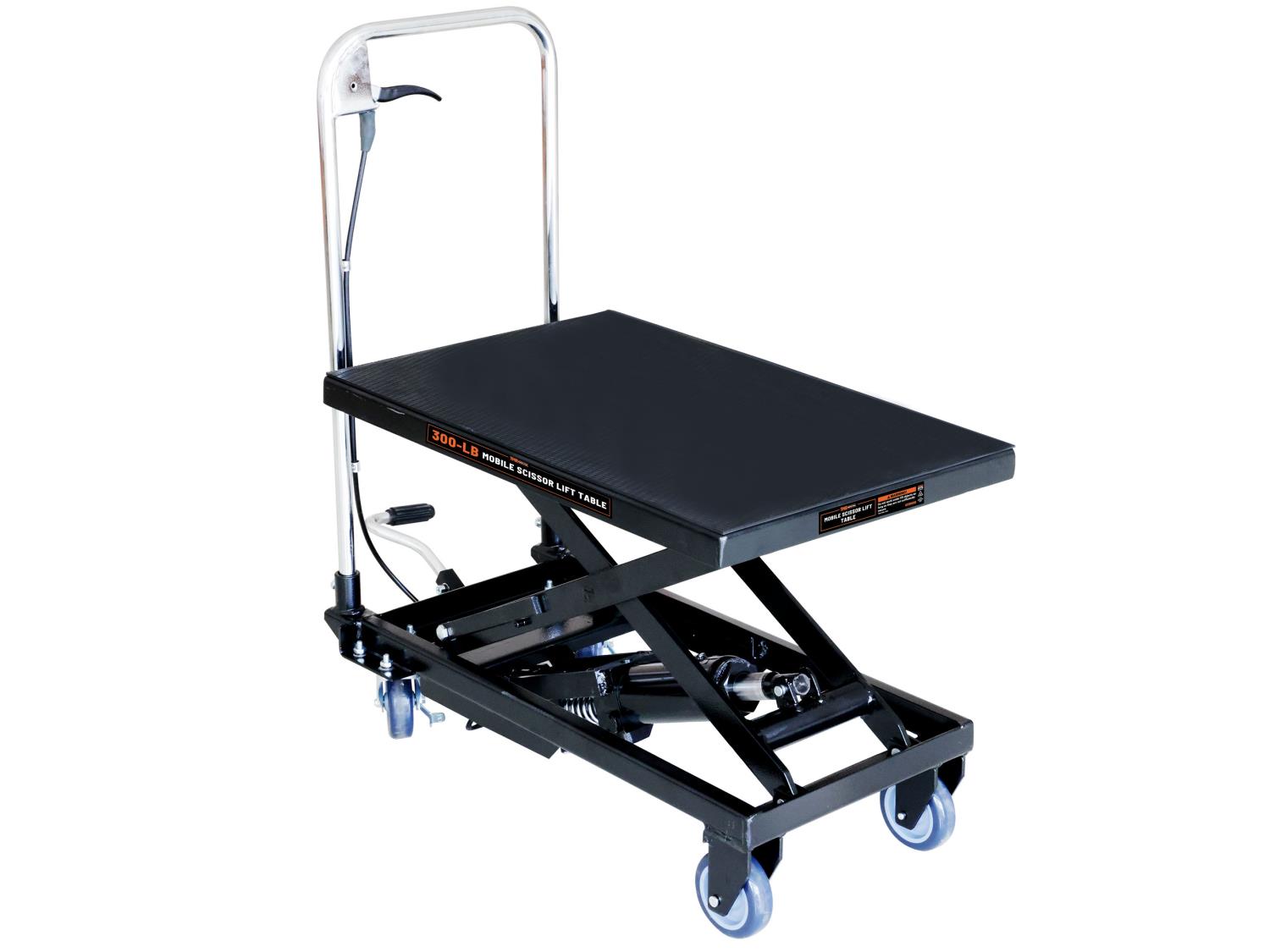 28 inch lifting height, foot pedal operation, rubber padded table top