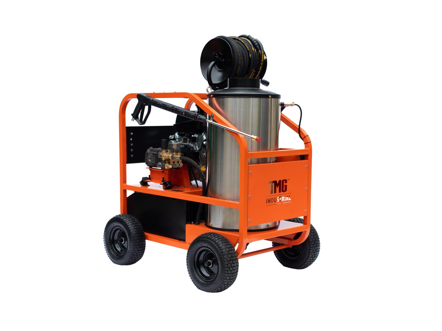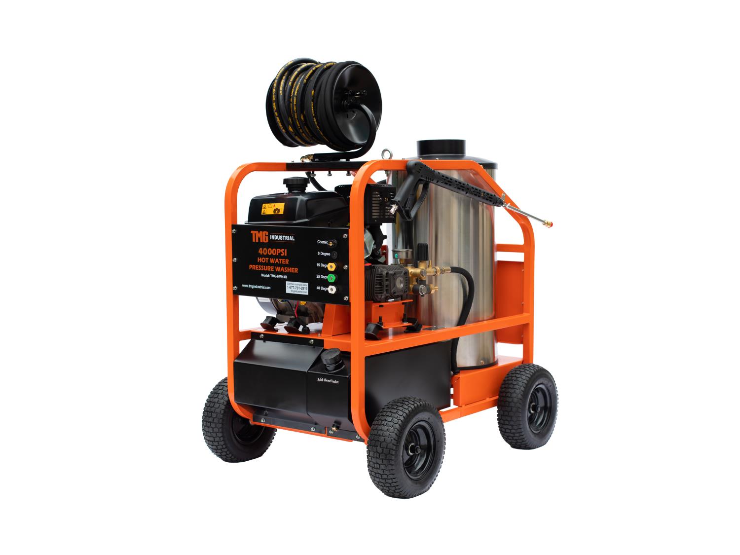 191 TMG Industrial TMG-HW41R 4000 PSI Hot Water Pressure Washer with 100 Ft Hose Reel (Unused)