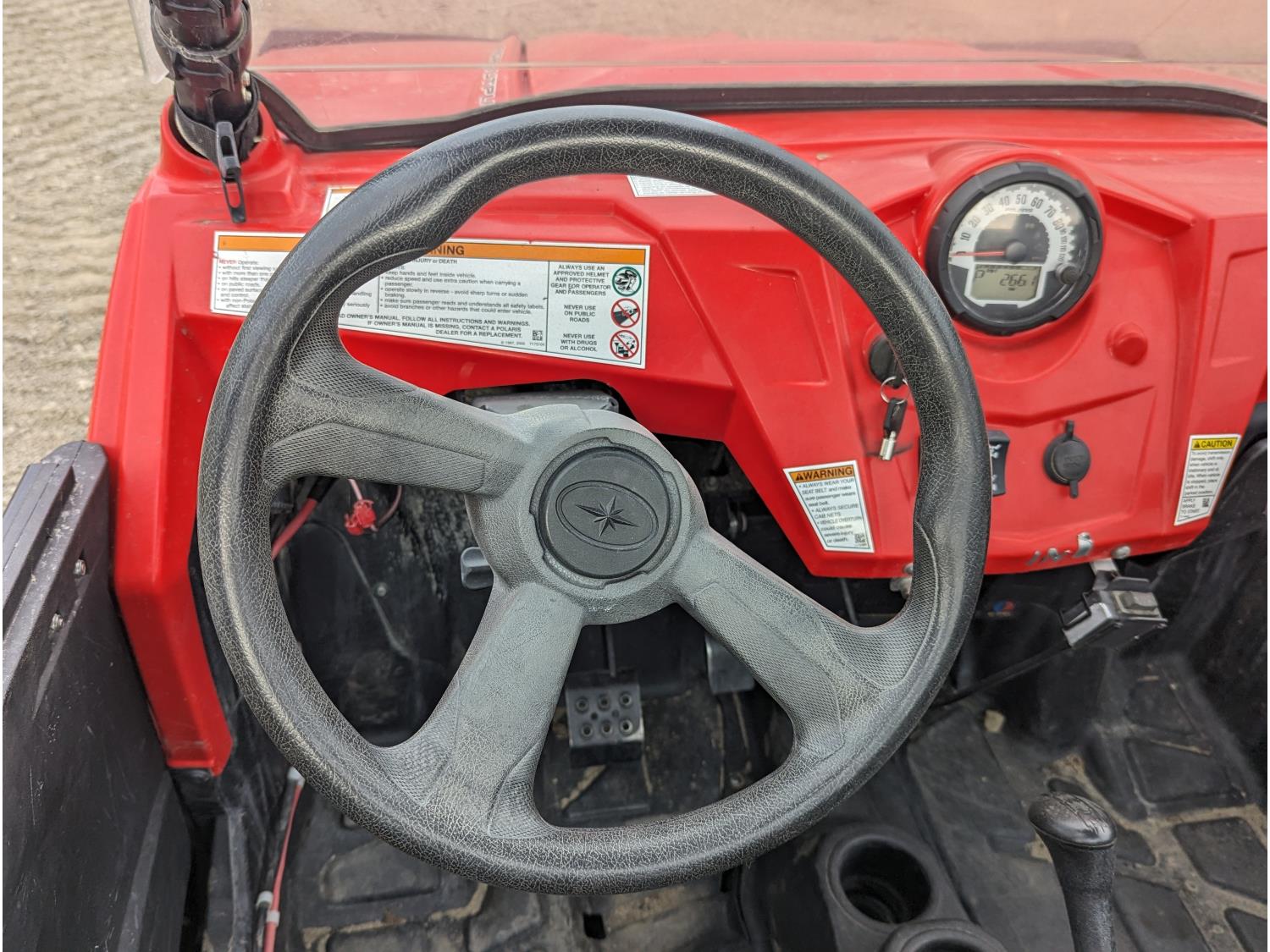 800 cc fuel injected water cooled engine, CVT transmission, Hi/Lo range, reverse, open canopy, windshield, front winch, independent suspension, 25X8.00-12NHS front tires, 25X10.00-12NHS rear tires