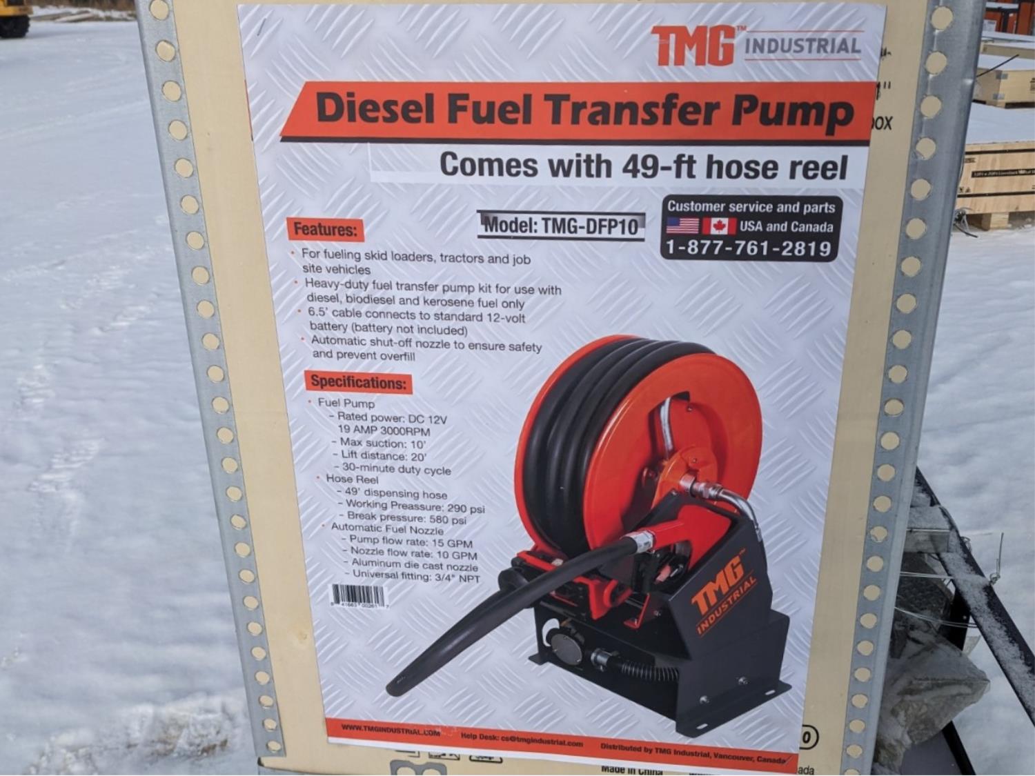 132 TMG Industrial TMG-DFP10 Diesel Fuel Transfer Pump w/ 49 Ft Hose Reel (Unused)
