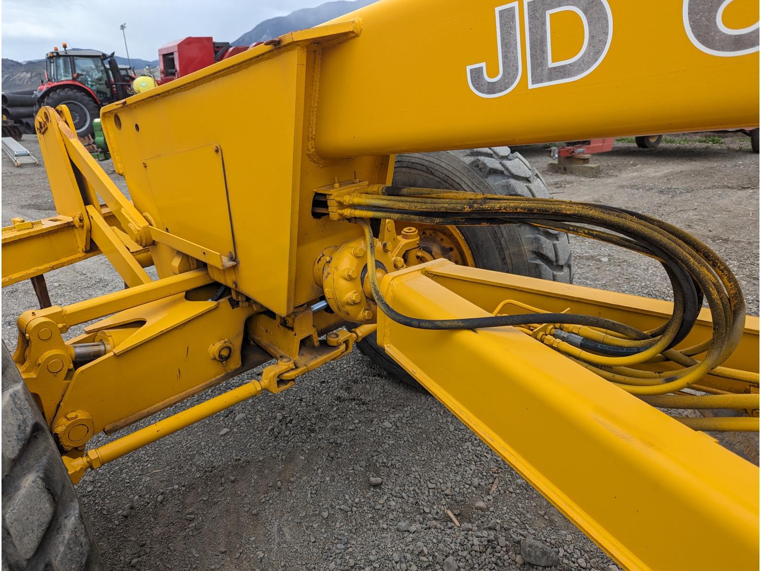 Enclosed cab, 135hp 6.7L John Deere turbo diesel, powershift transmission 8 forward gears, 4 reverse, front ripper 14.00RR24, articulated frame steering, front wheel lean, , differential lock, 12 Ft moldboard,
