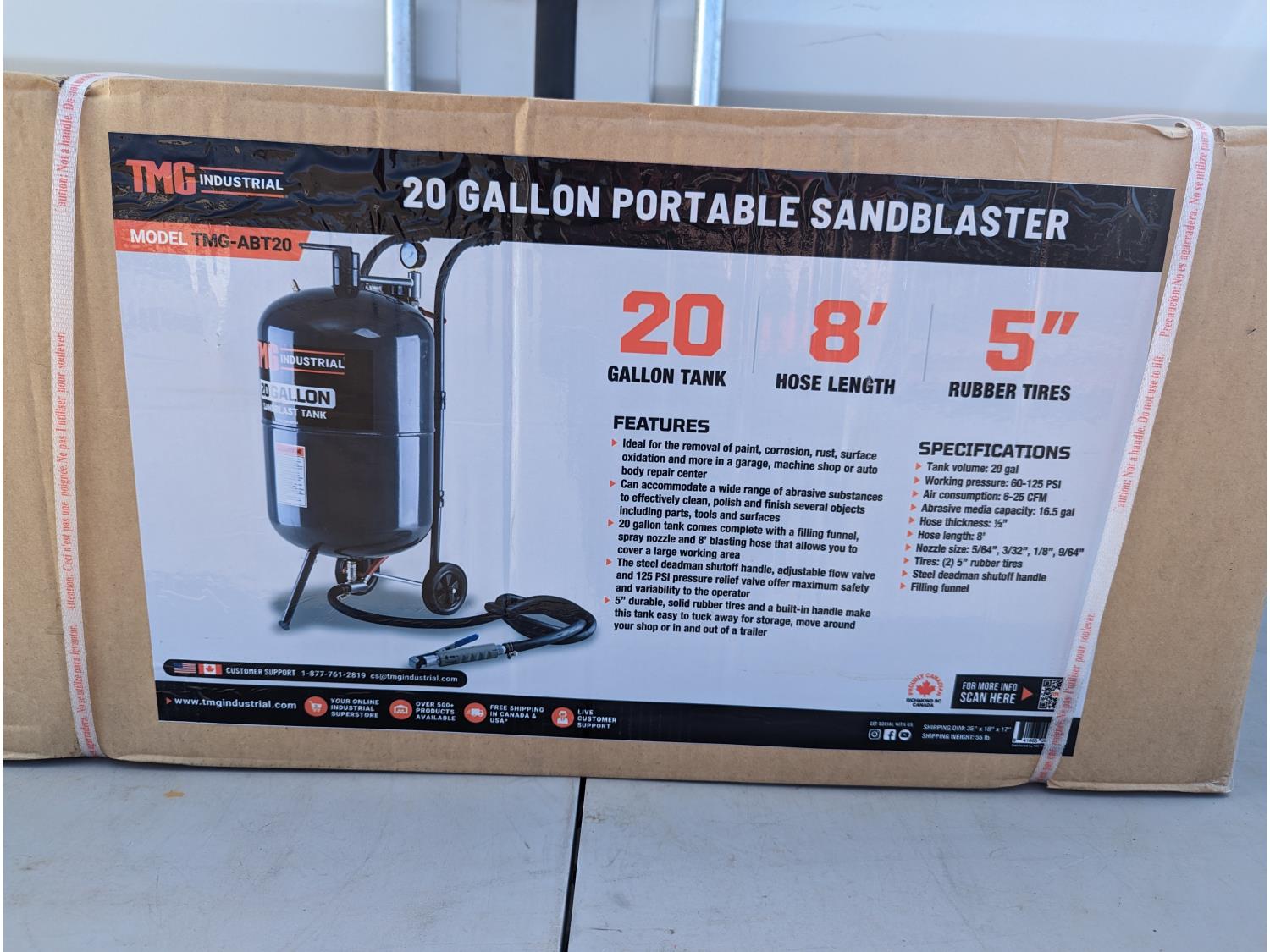 130 TMG Industrial TMG-ABT20 20 Gallon Portable Sandblaster (Unused)
