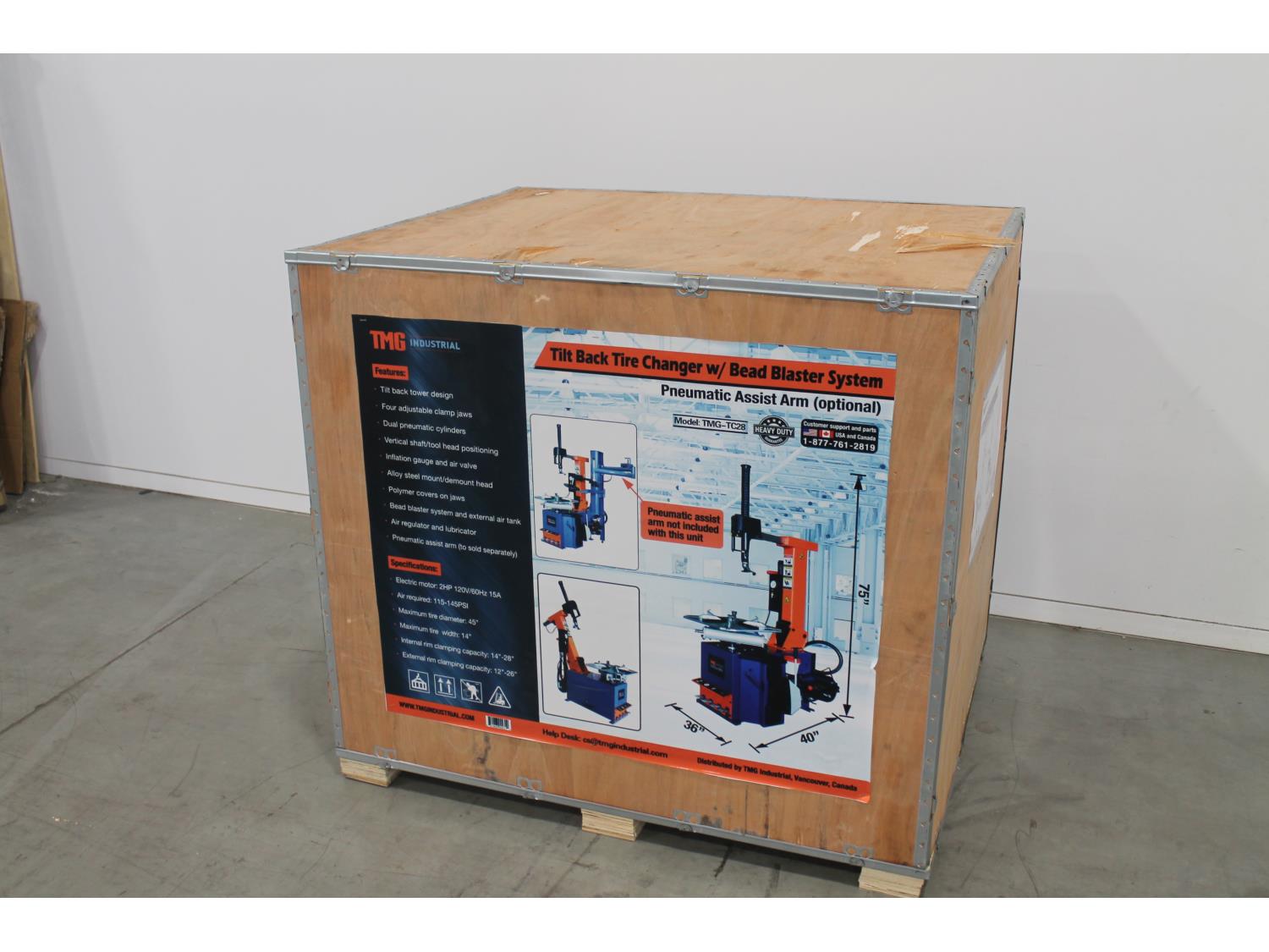 135 TMG Industrial TMG-TC28 Tilt-Back Semi-Automatic Tire Changer (Unused)