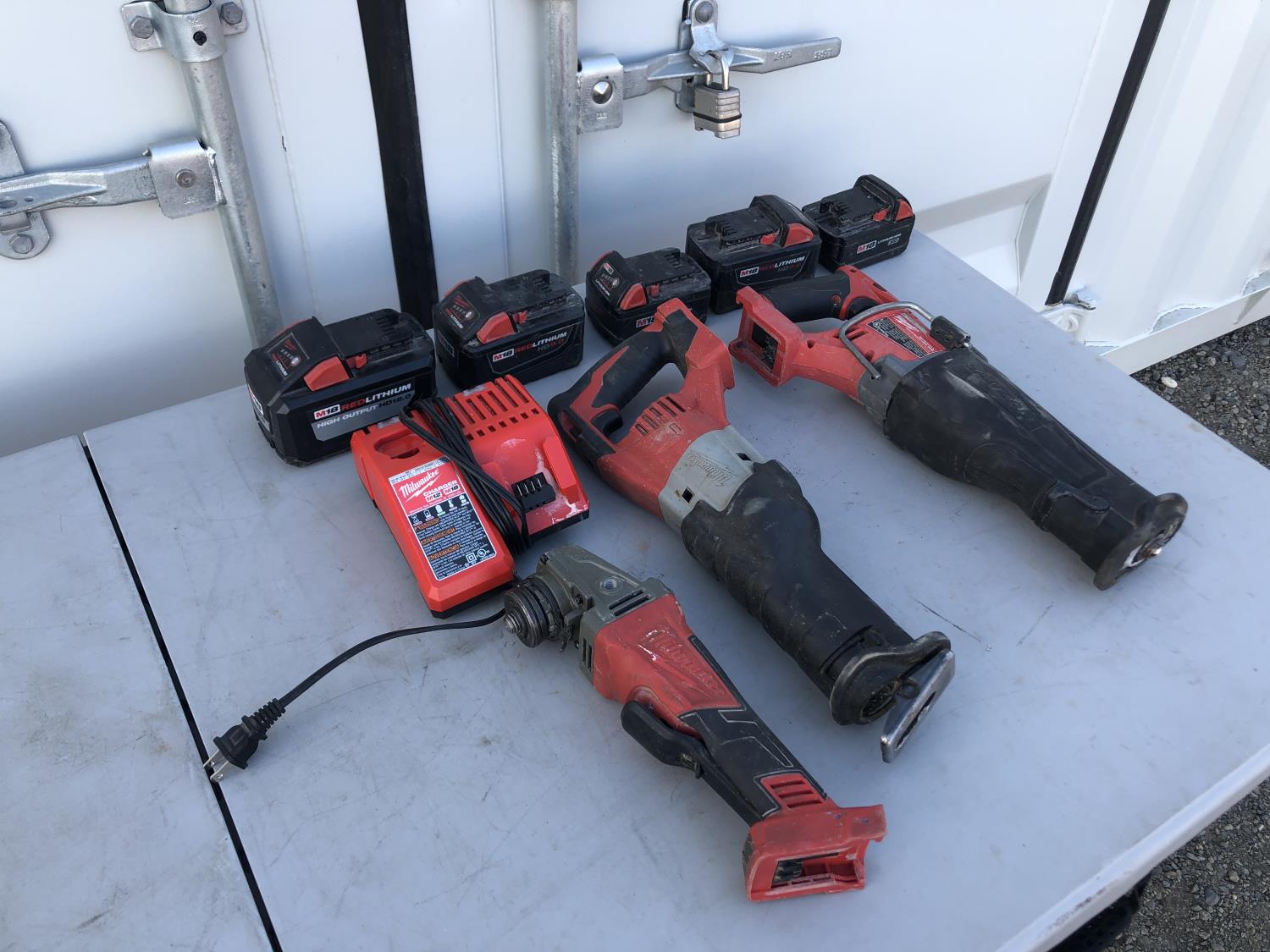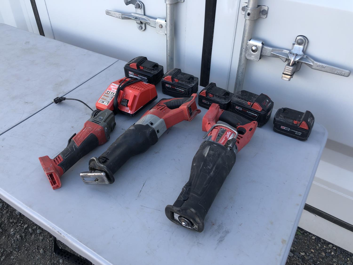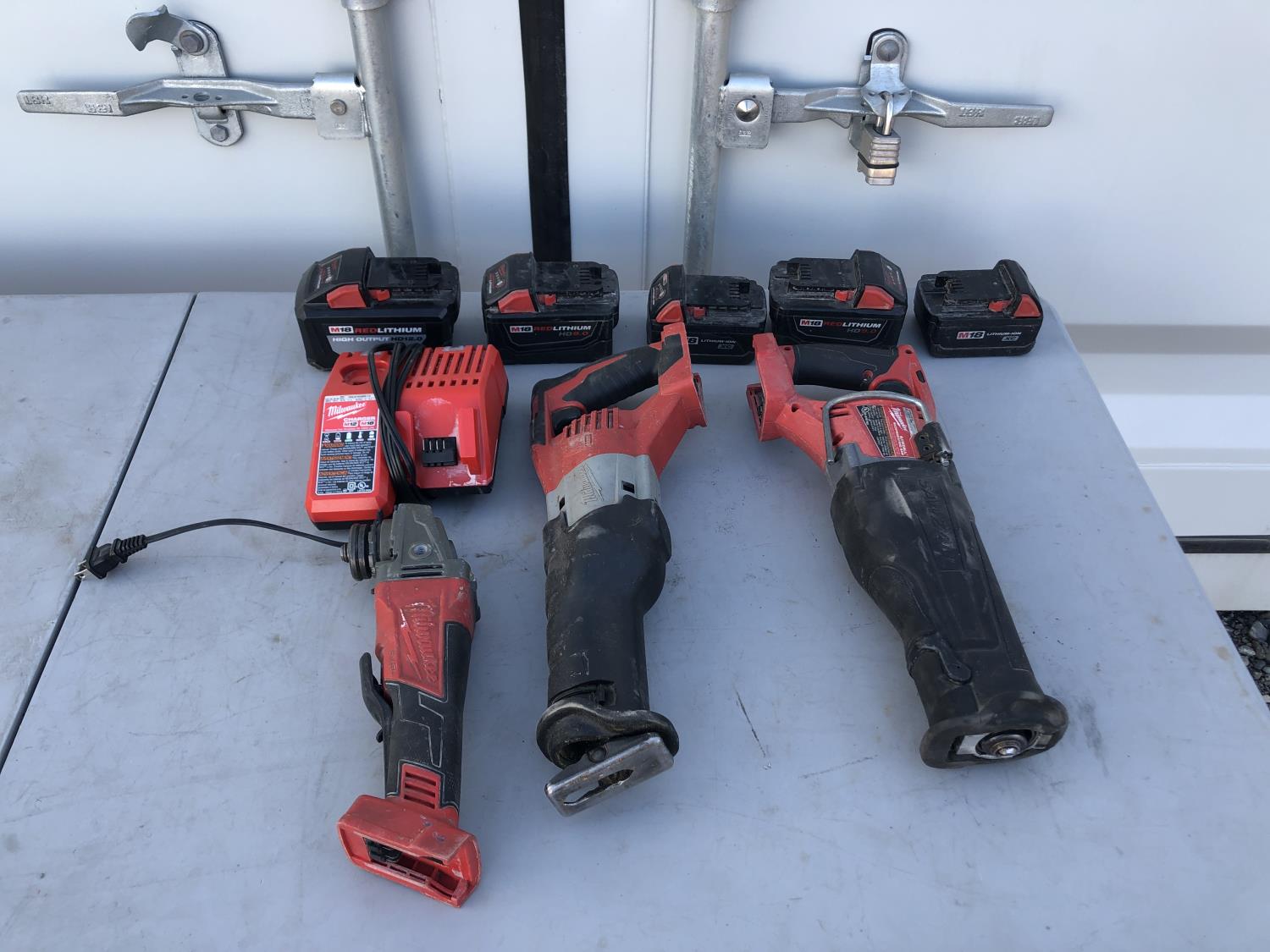 1068 Milwawkee Grinder, Saw, (5) Batteries C1 B4