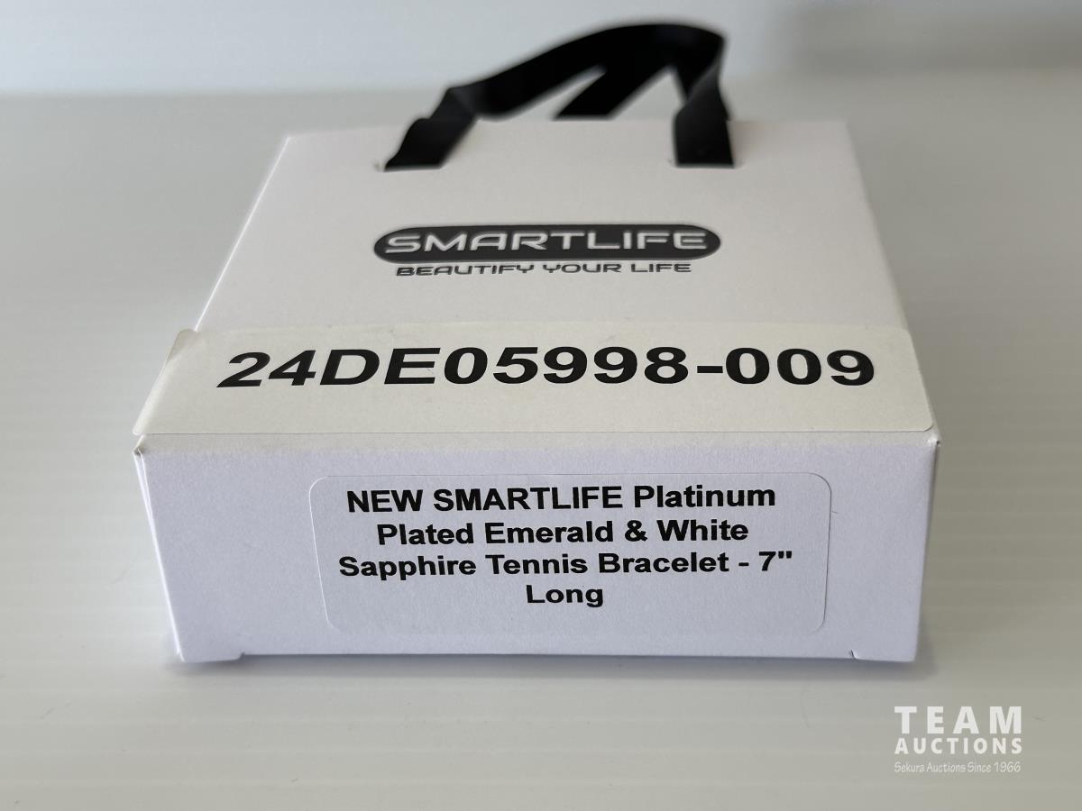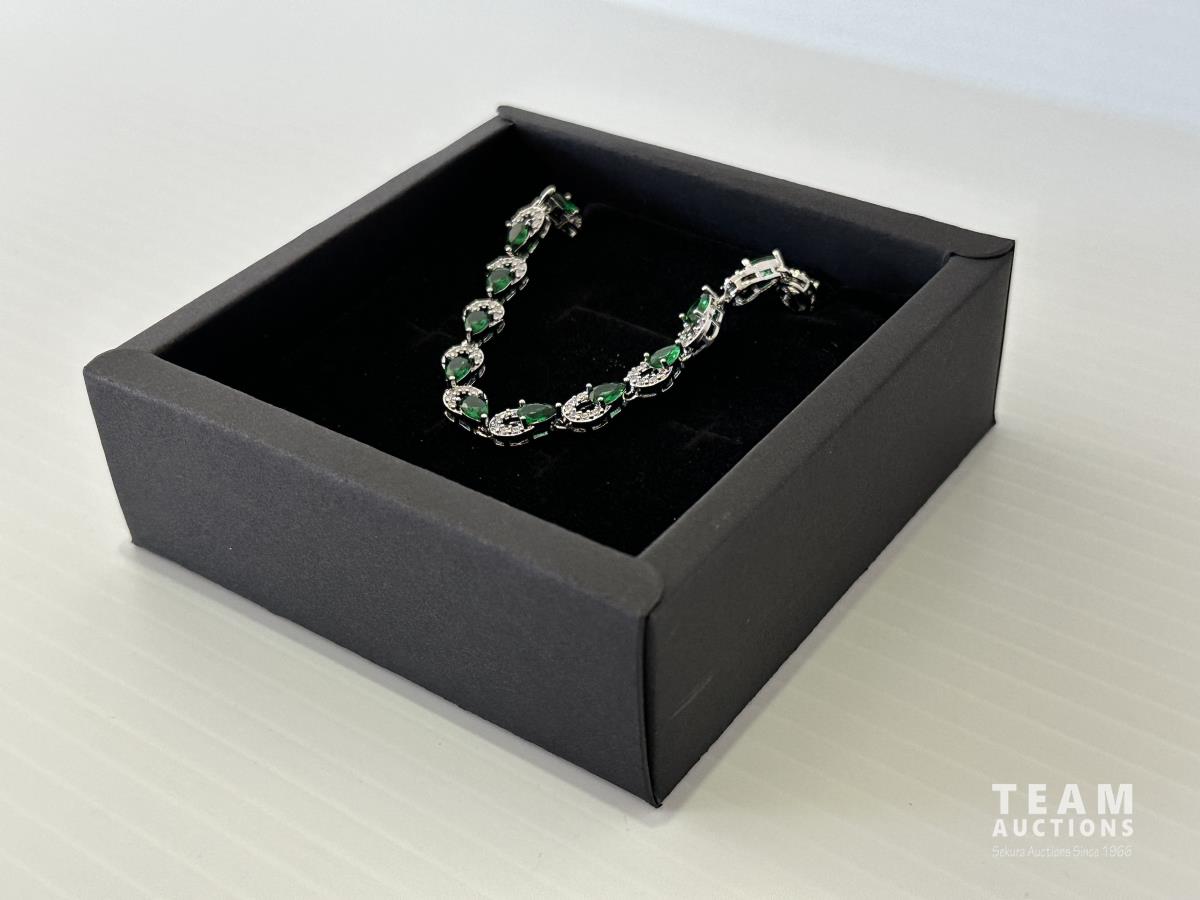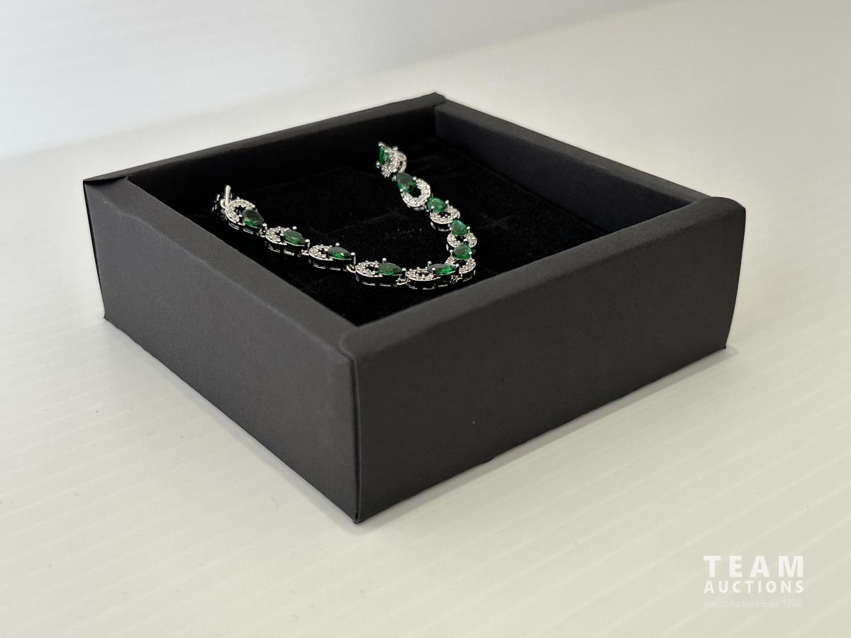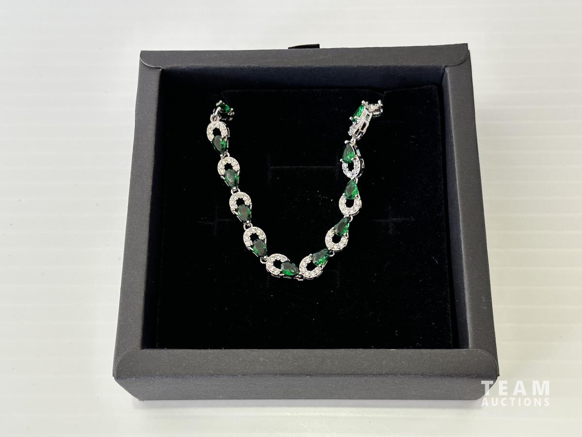 1008 Smartlife Platinum Plated Emerald and White Sapphire Bracelet (Unused)