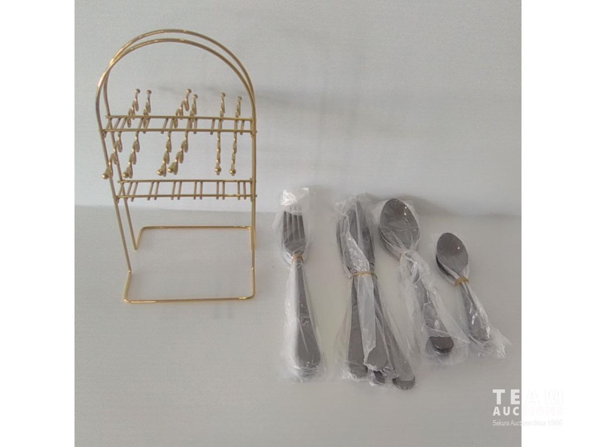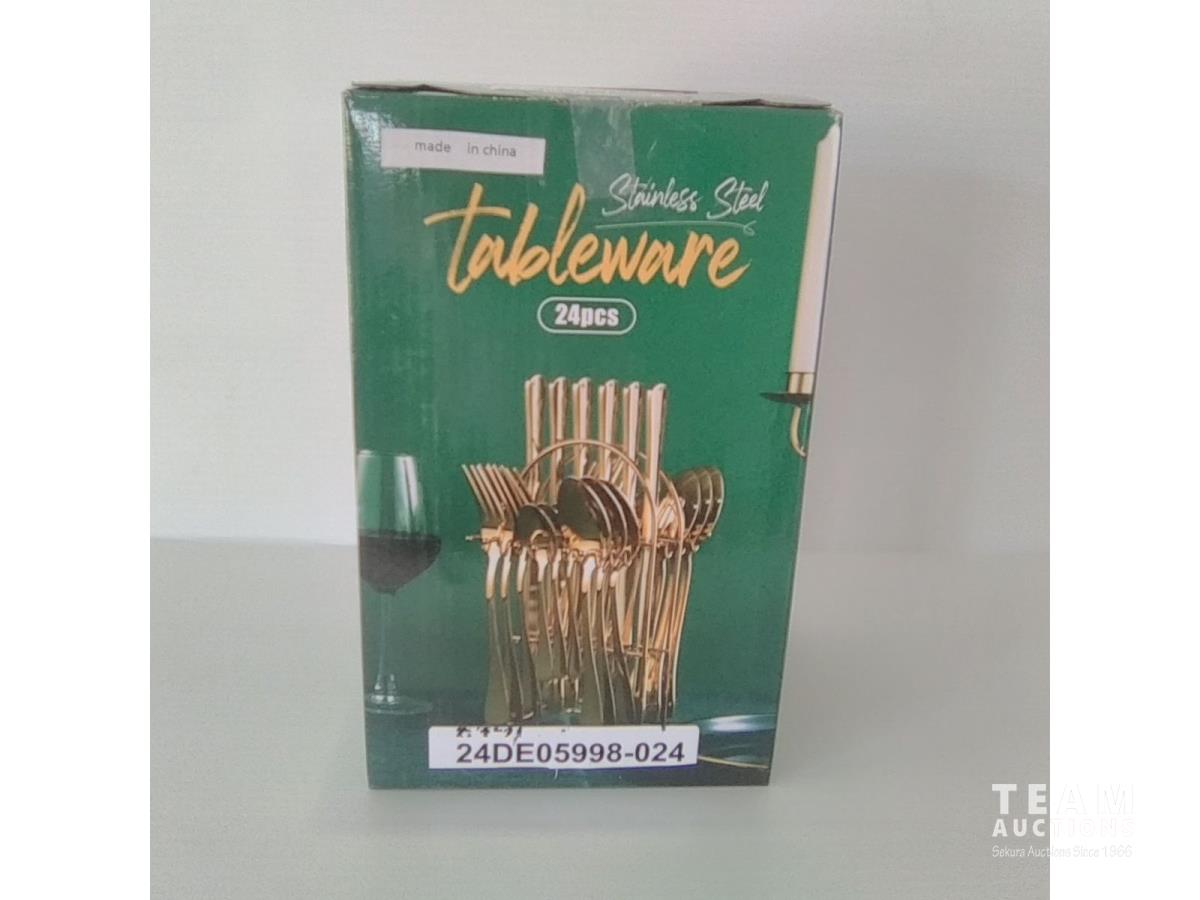 1023 Smartlife 24 Piece Black and Gold Flatware Set (Unused)