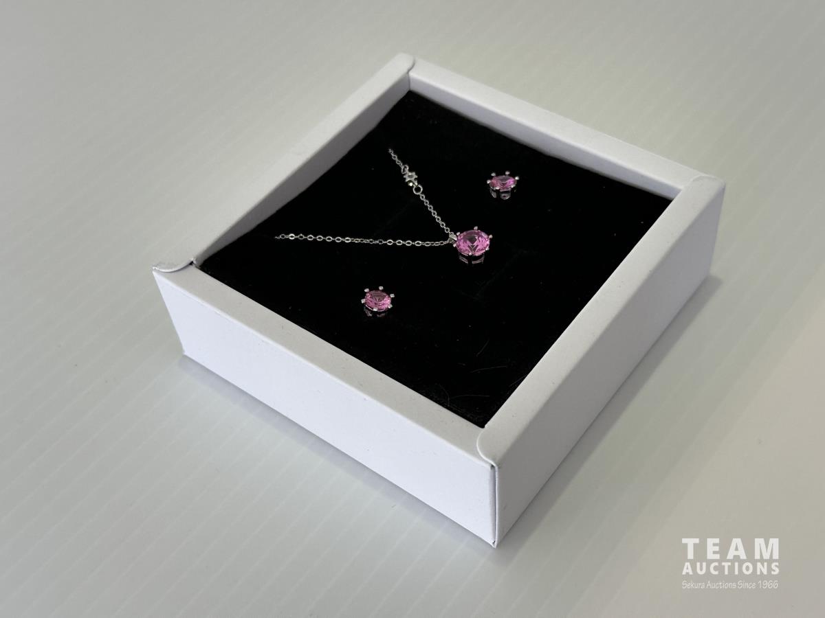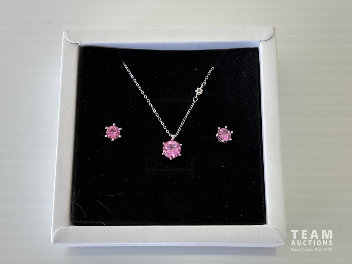 8.0 mm Pendant and 6.0 mm Earrings Mounted in Sterling silver with white gold Overlay