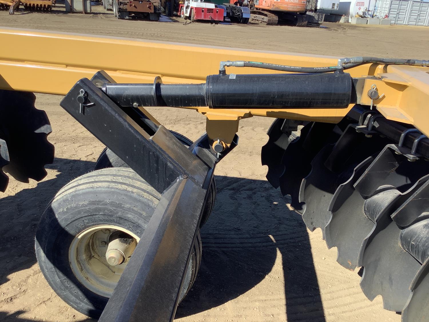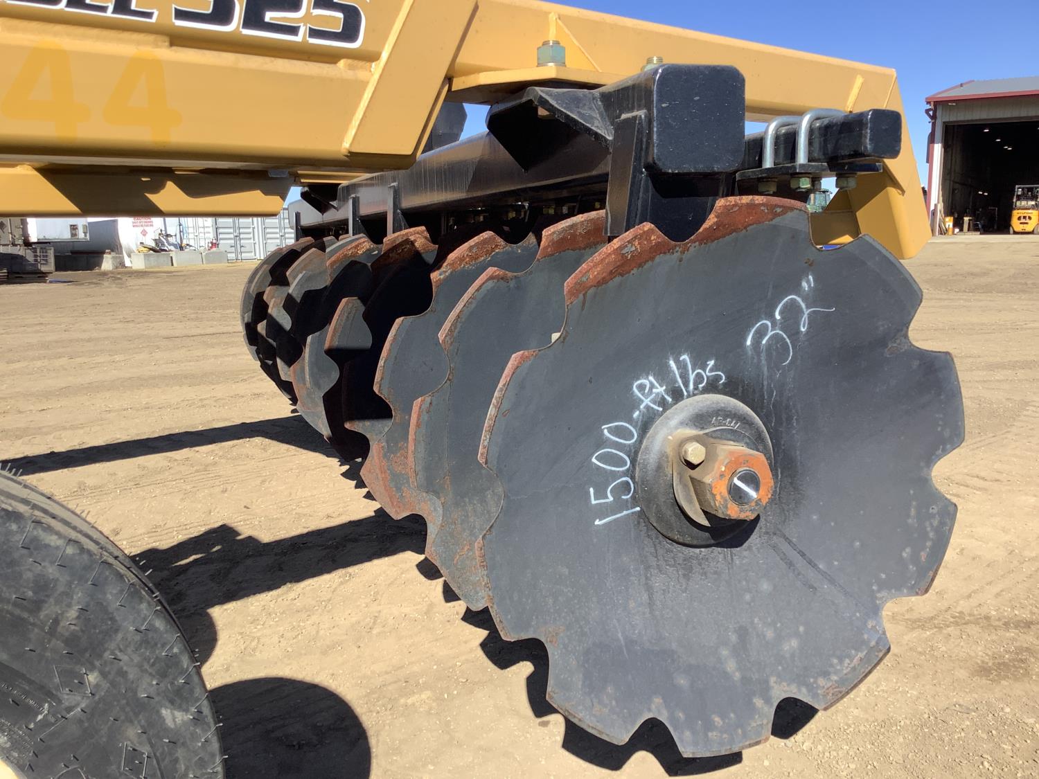front: 12 inch spacing, notched 32 inch discs, , rear: 12 inch spacing, notched 32 inch discs, , scrapers, duals main frame, 3/8 inch thick blades, 2-1/2 inch gang shaft, oil bath bearing in heavy cast ductile housings, 5X16 hydraulic lift cylinder, wide frame unit, hitch jack