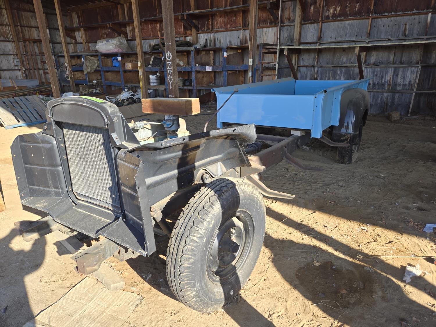 This pickup is in the middle of a complete restoration. Seller says he has all the parts, body work is pretty much done. Lots of new parts come with unit, recovered seat, complete wiring harness, hood and box are painted, new fenders etc.