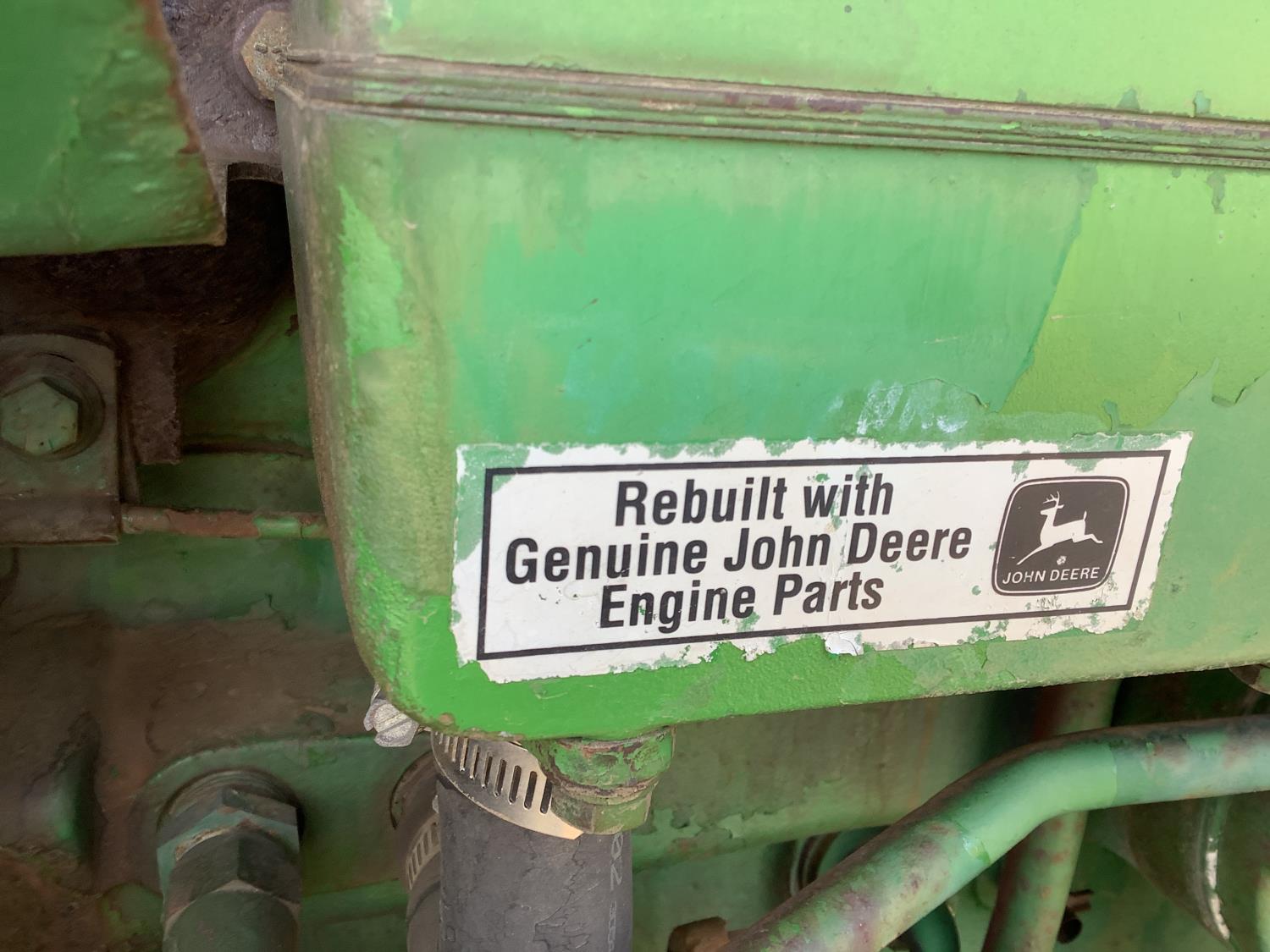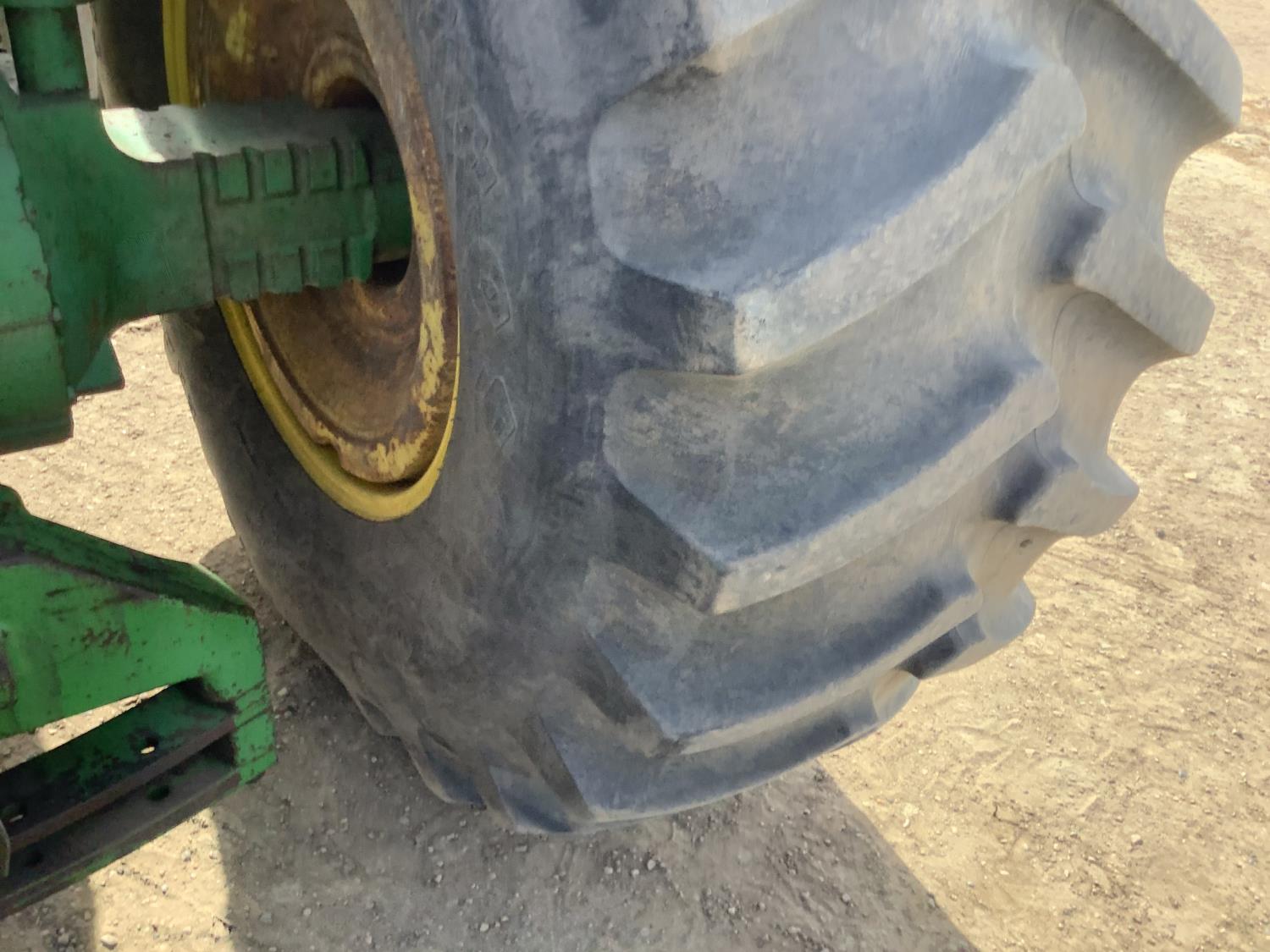 John Deere 7.6 6 cylinder engine, 180 PTO HP, 8 speed power shift transmission, cab, A/C, radio, Big 1000 PTO, 3 rear hydraulic outlets, rear wheel weights, 14LX16.1 front tires, 24.5X32 rear tires