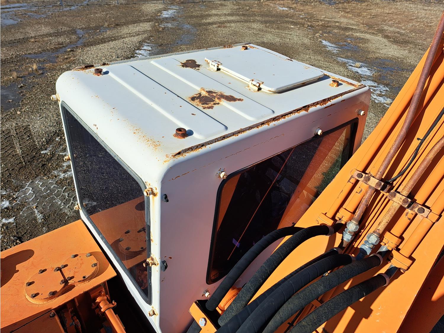 Enclosed cab, A/C, A/C seat, Pro Heat engine heater, electric circulating block heater, cab roof escape hatch, 20 inch dig bucket, hydraulic Q/C coupler, 2 auxiliary hydraulics, 9 Ft 4 inch stick, outriggers, backfill blade, 100 inch backfill blade, 10.00-20 tires