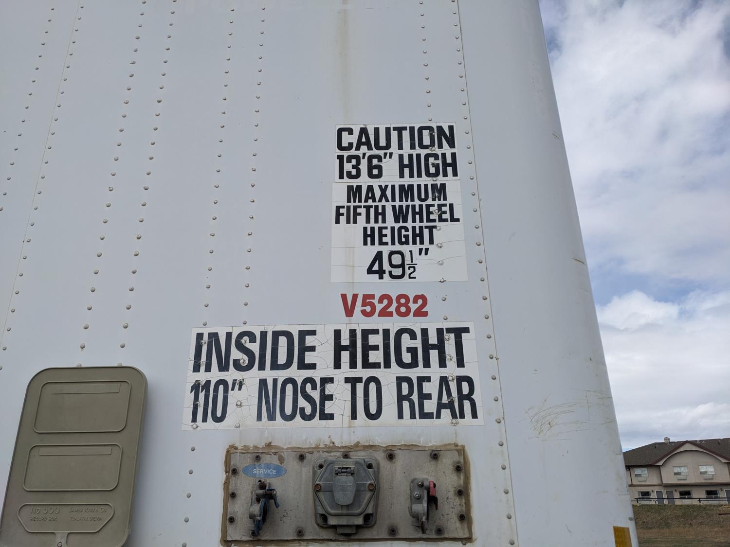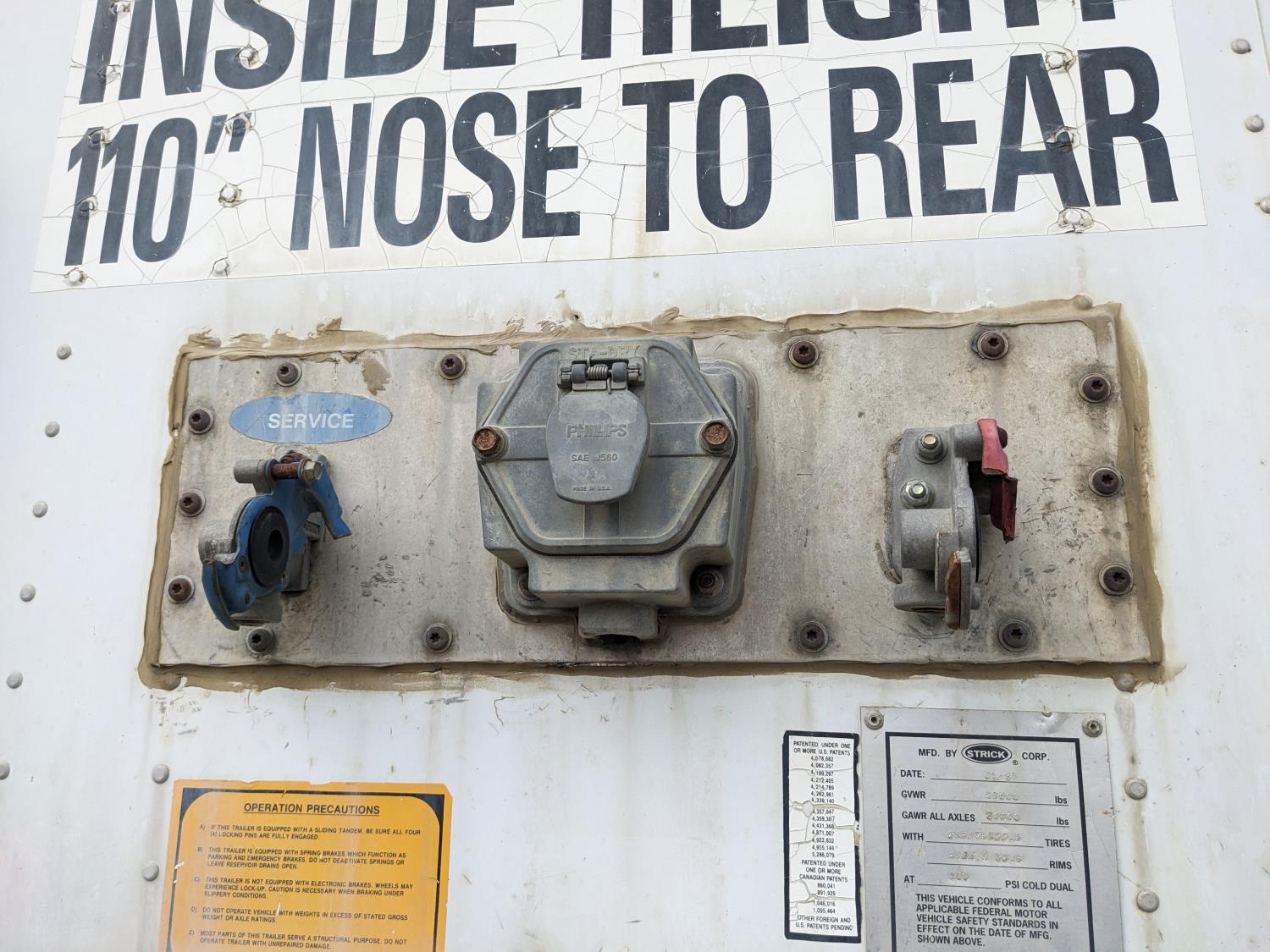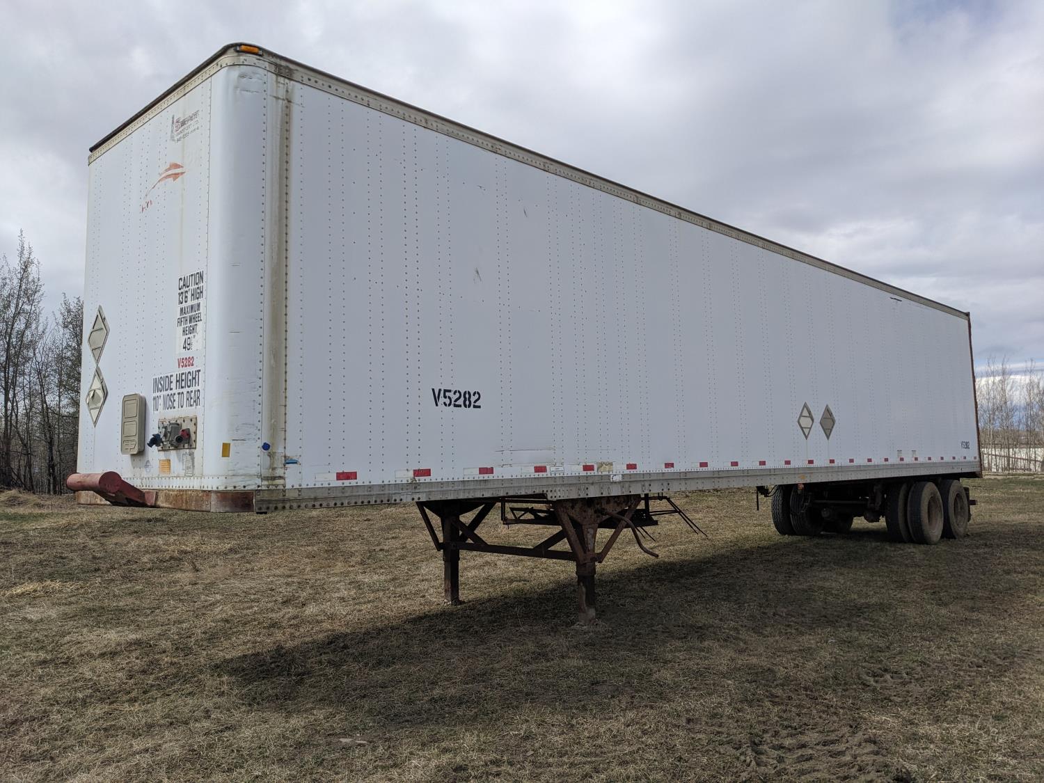 8 ft 6 inch van width, 162 inch height, side door, rear swing doors, air brakes, spring suspension, 20,000 lb axles, 295/75R22.5 tires