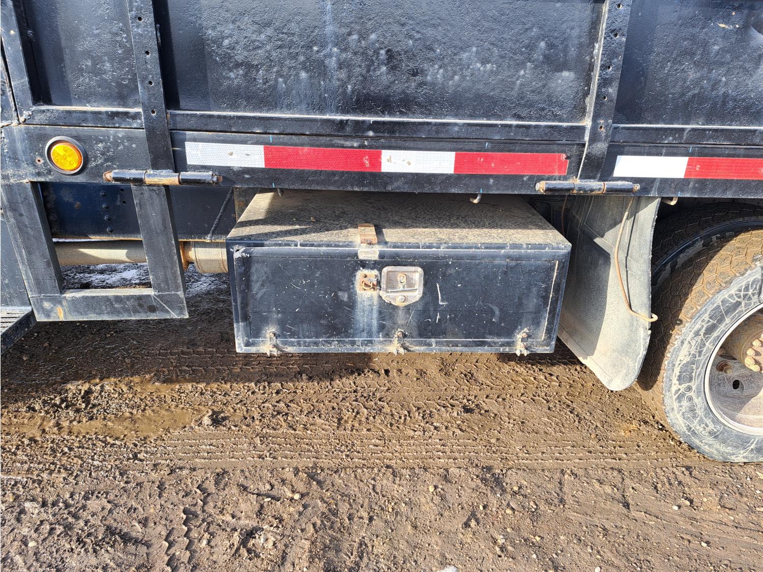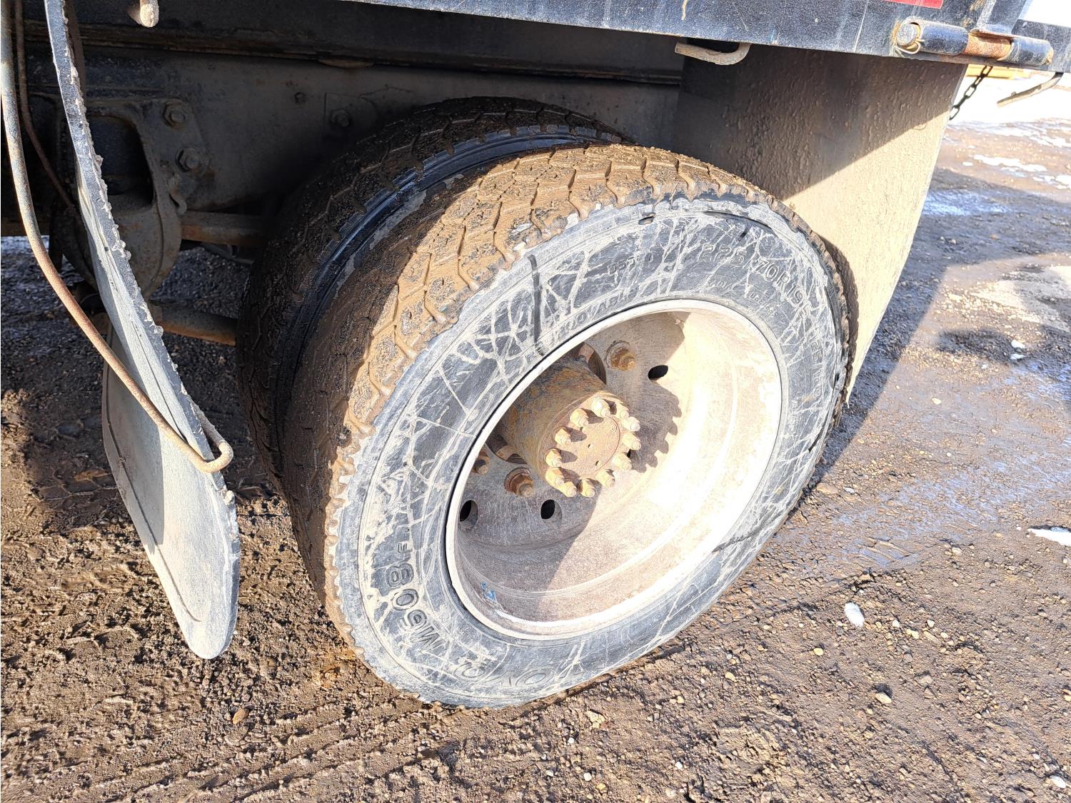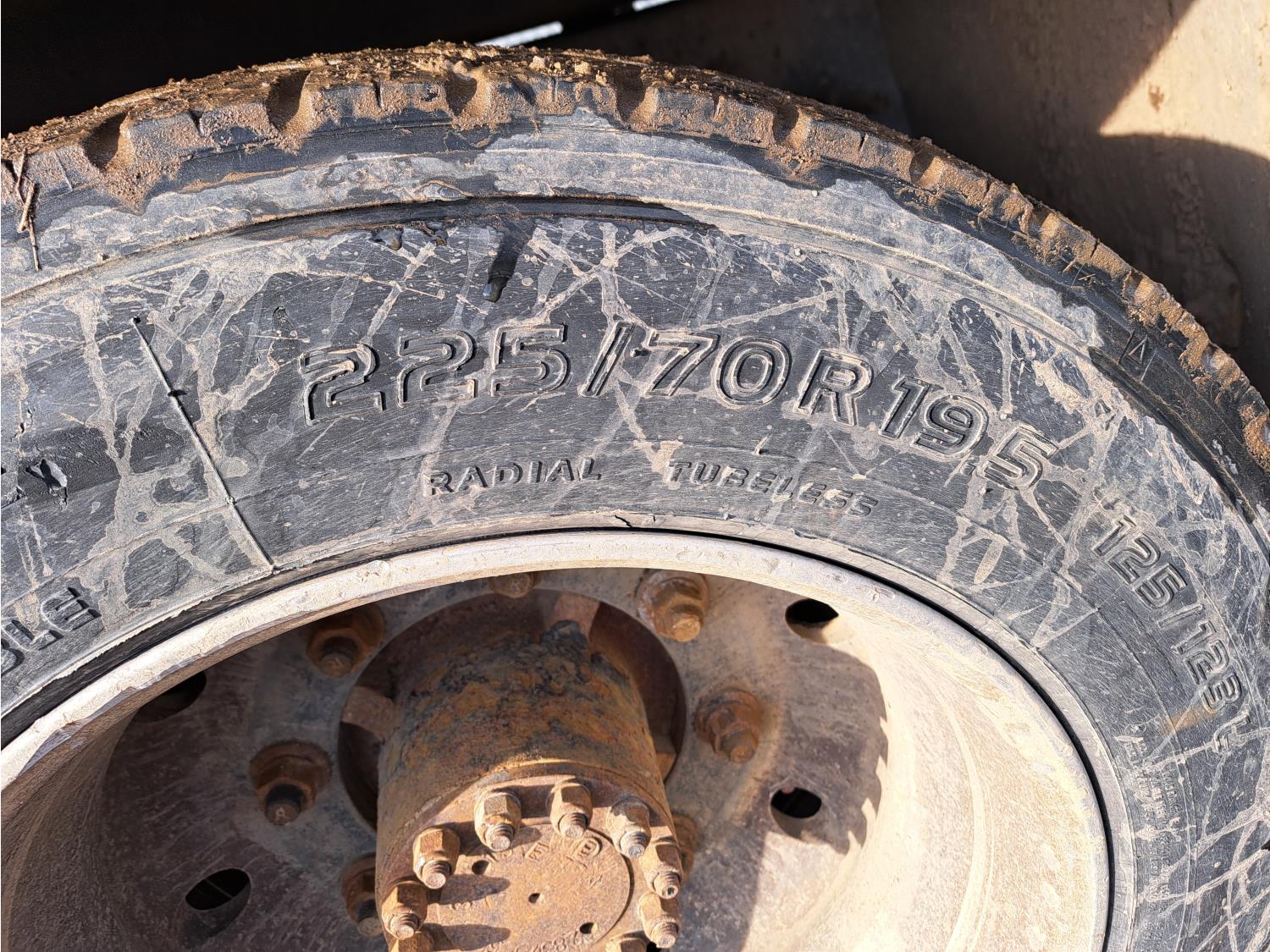 Caterpillar 3116 6.6 V8 215 HP diesel engine, electric engine block heater, 6 speed automatic transmission, A/C, air ride seats, radio, steel headache rack, steel tool boxes, 7 ft 9 inch x 11 ft 8 inch deck, single ram hoist, beacons, air ride suspension, 200 inch WB, 225/70R19.5 tires